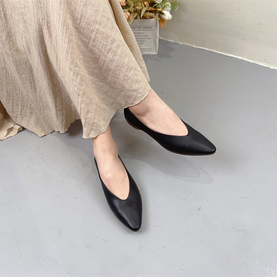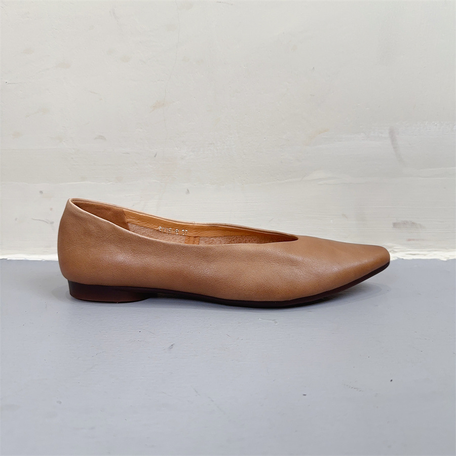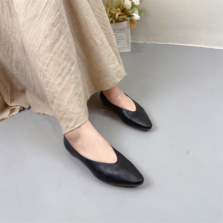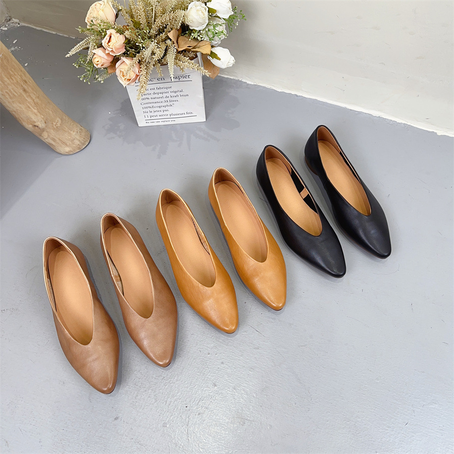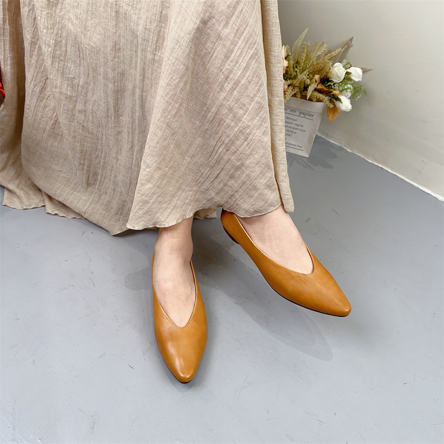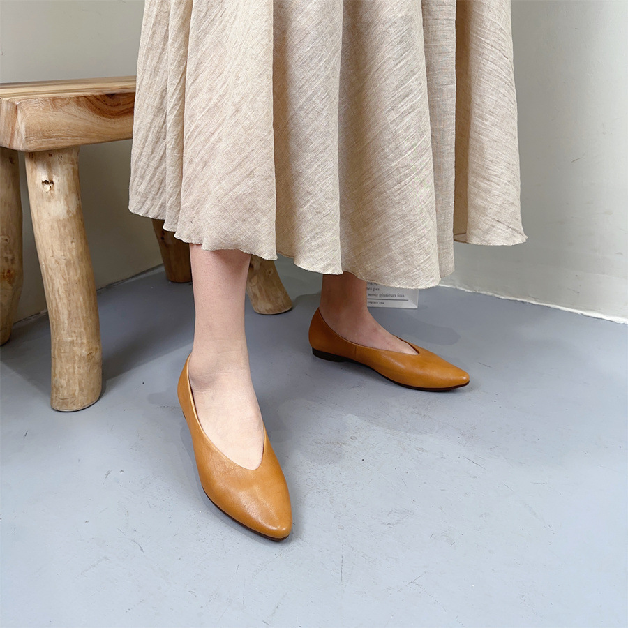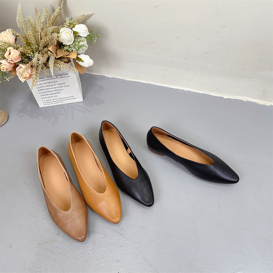 2025 봄 새로운 지적 발가락 부드러운 가죽 플랫 캐주얼 여성 싱글 신발 첫 번째 레이어 소 가죽 게으른 신발