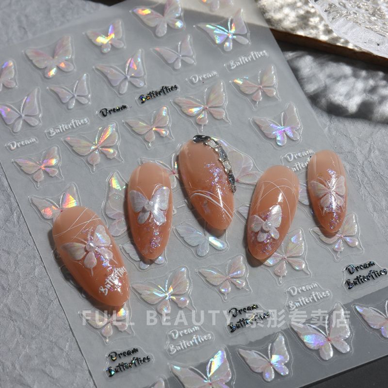 골드 느낌 얼음 크리스탈 오로라 나비 네일 스티커 쉘 라이트 요정 스타일 작은 빨간 책 같은 스타일의 낭만적 인 순수한 욕망 스타일스토어 가기