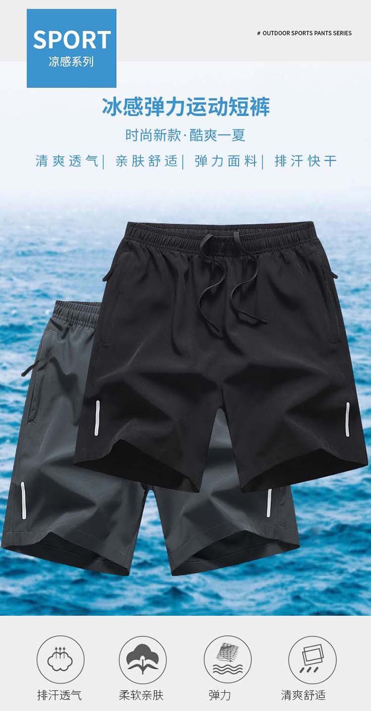 여름 캐주얼 크롭 팬츠 남성용 얇은 빠른 건조 반사 스트라이프 반바지 청소년 야외 스포츠 플러스 사이즈 느슨한 비치 바지