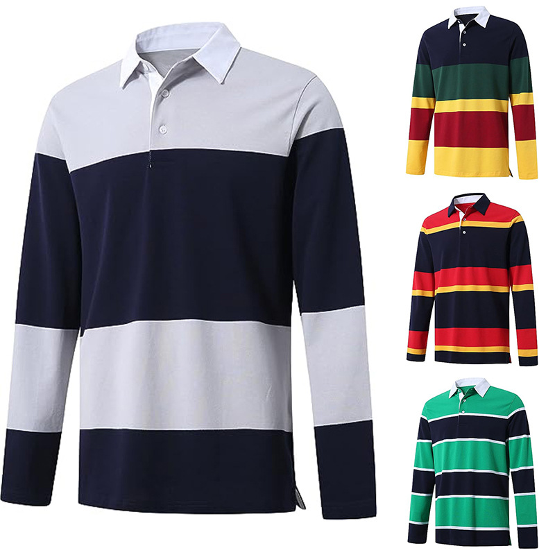 미국 남자 야외 스포츠 폴로 셔츠 줄무늬 통기성 캐주얼 다목적 골프 저지 느슨한 티셔츠 옷깃