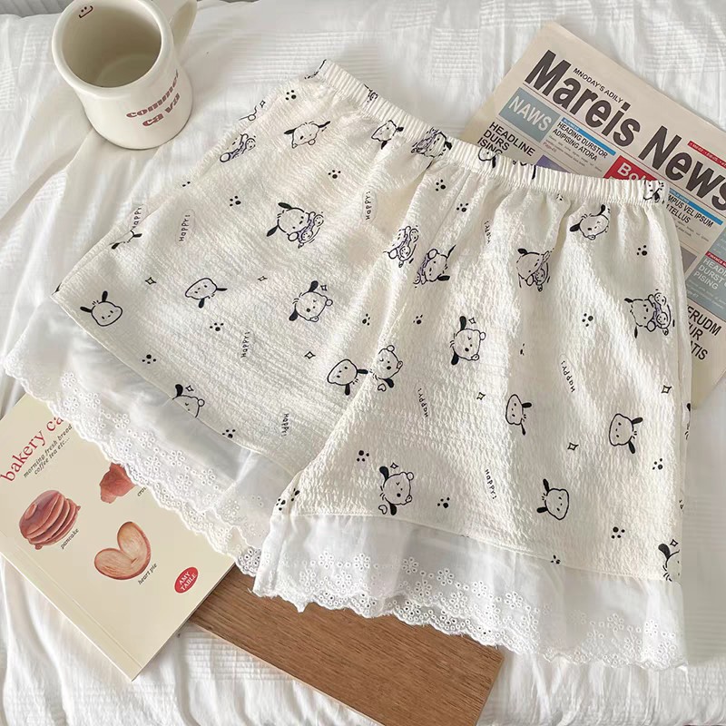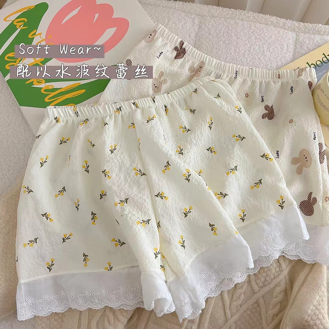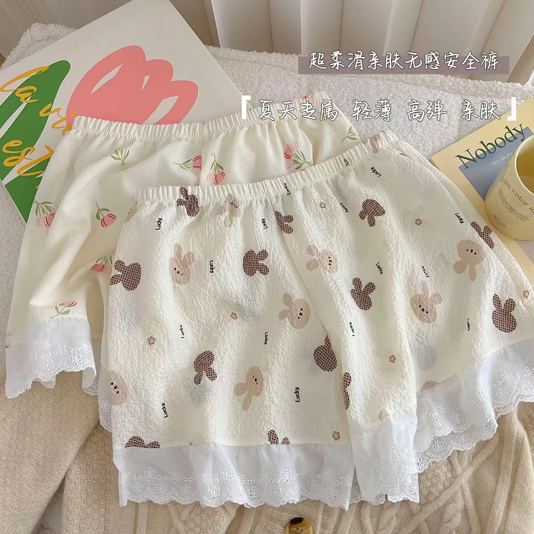 퍼프 일본풍 만화 프린트 레깅스 여성용 여름 얇은 스타일 외출용 jk 안전바지 산책용 홈웨어 바지 노출방지