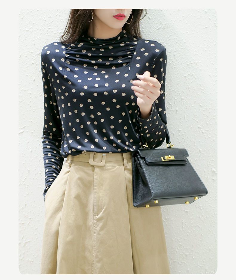 봄과 가을 속옷 여성용 겉옷 이너 티셔츠 여성용 한국식 디자인 감각 틈새 슬림 핏 플러스 사이즈 여성 서양식 탑