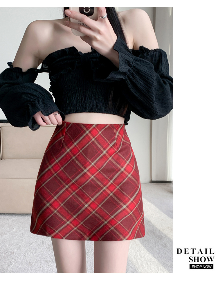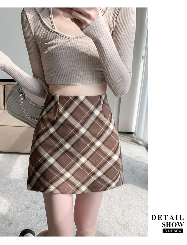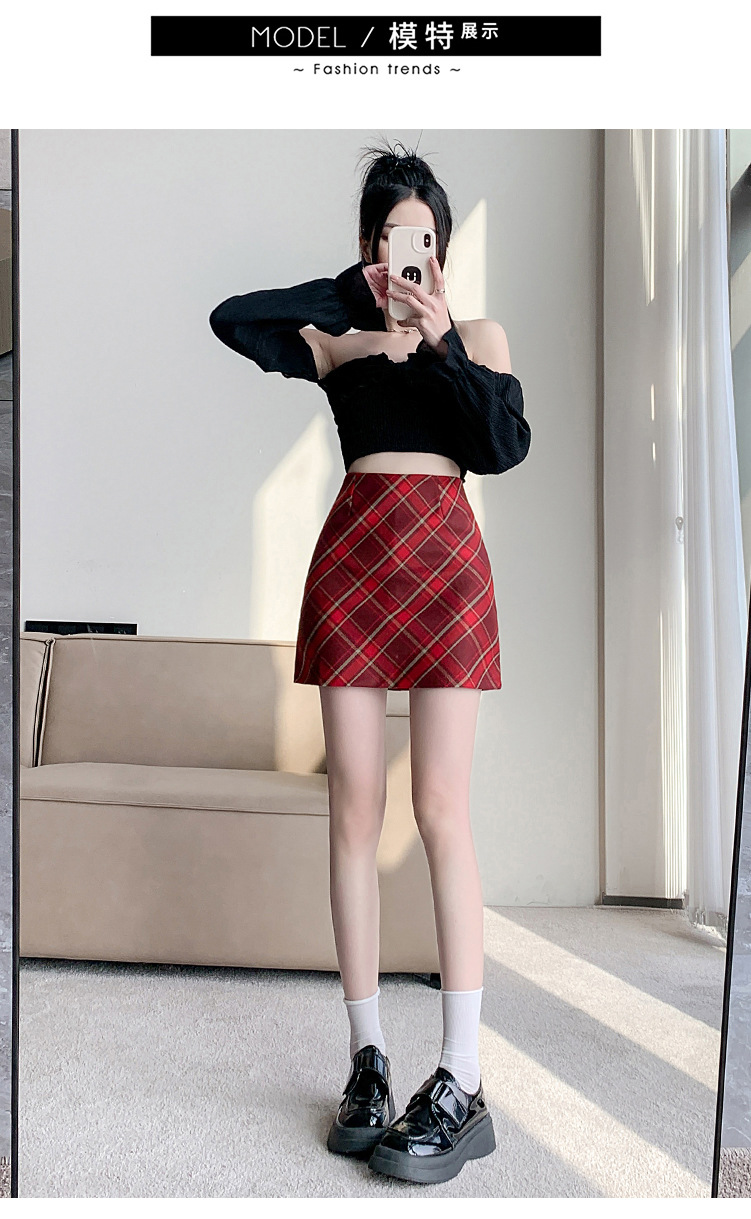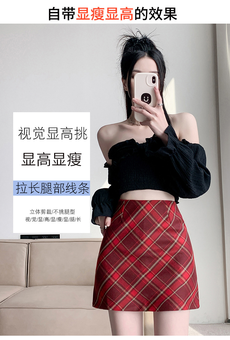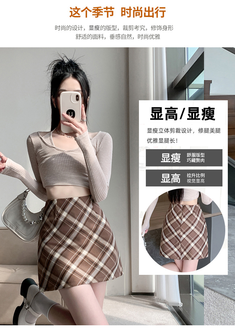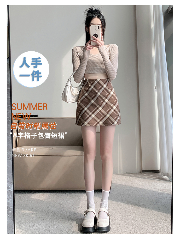 여성용 복고풍 격자 무늬 스커트 봄과 여름 새로운 높은 허리 슬리밍 엉덩이 스커트 작은 A 라인 스커트 도매스토어 가기