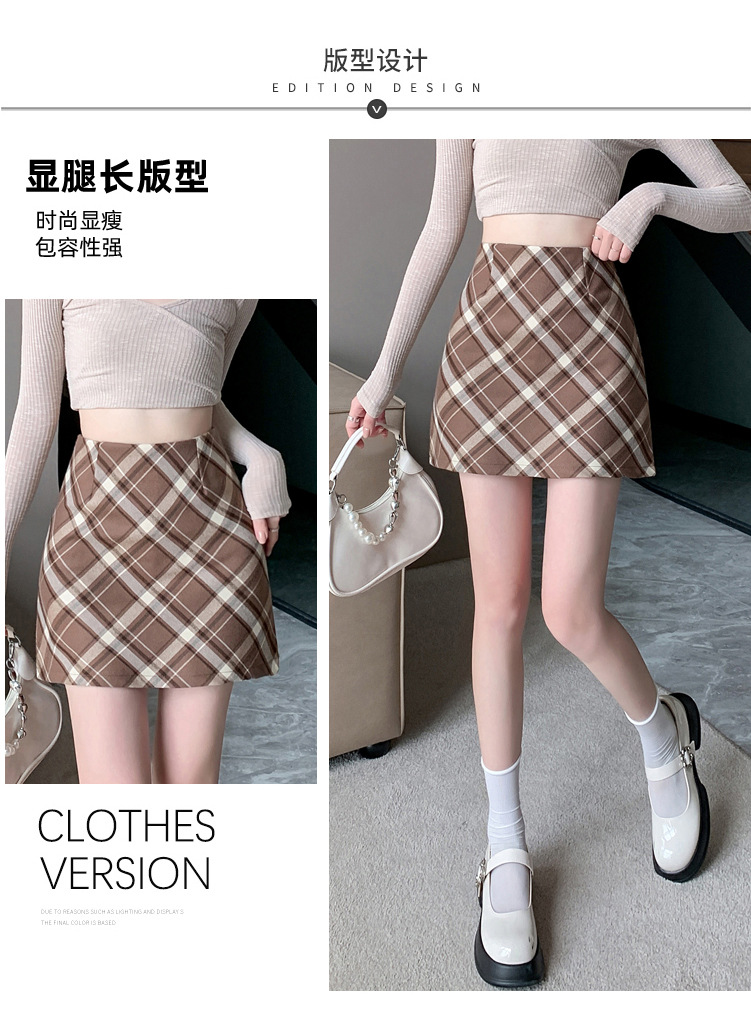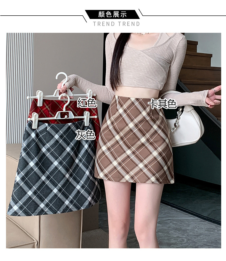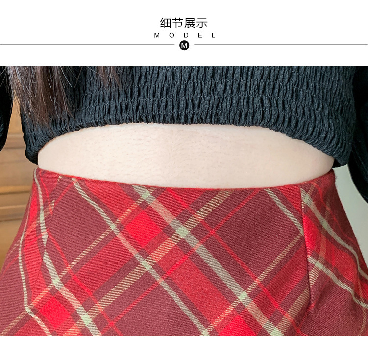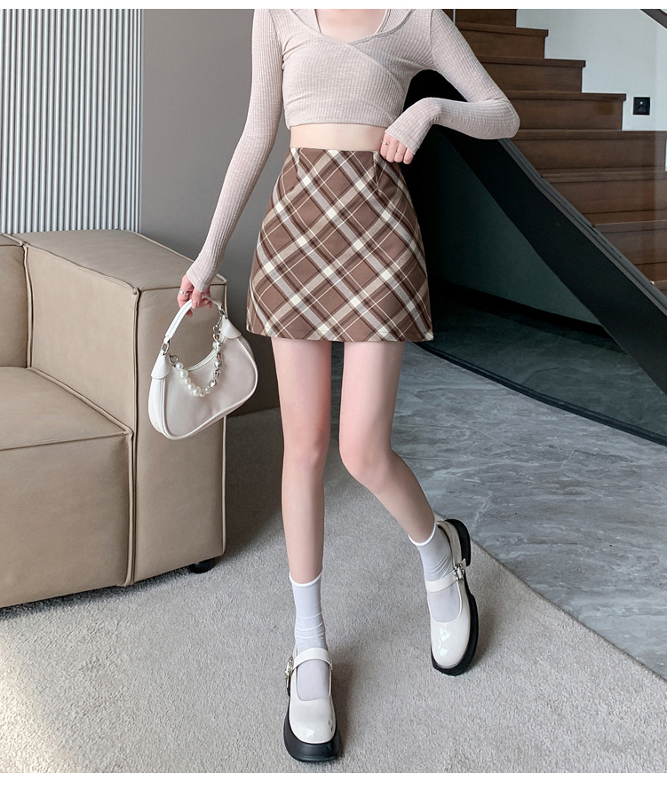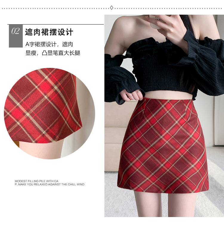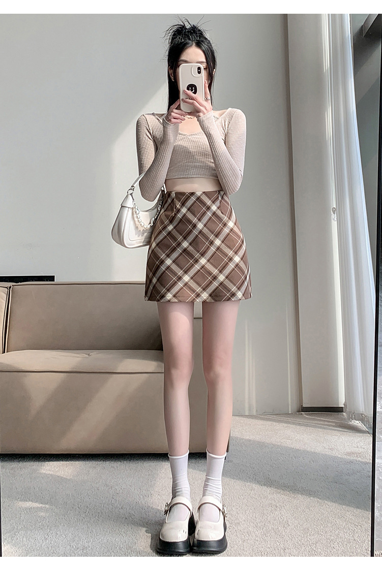 여성용 복고풍 격자 무늬 스커트 봄과 여름 새로운 높은 허리 슬리밍 엉덩이 스커트 작은 A 라인 스커트 도매스토어 가기