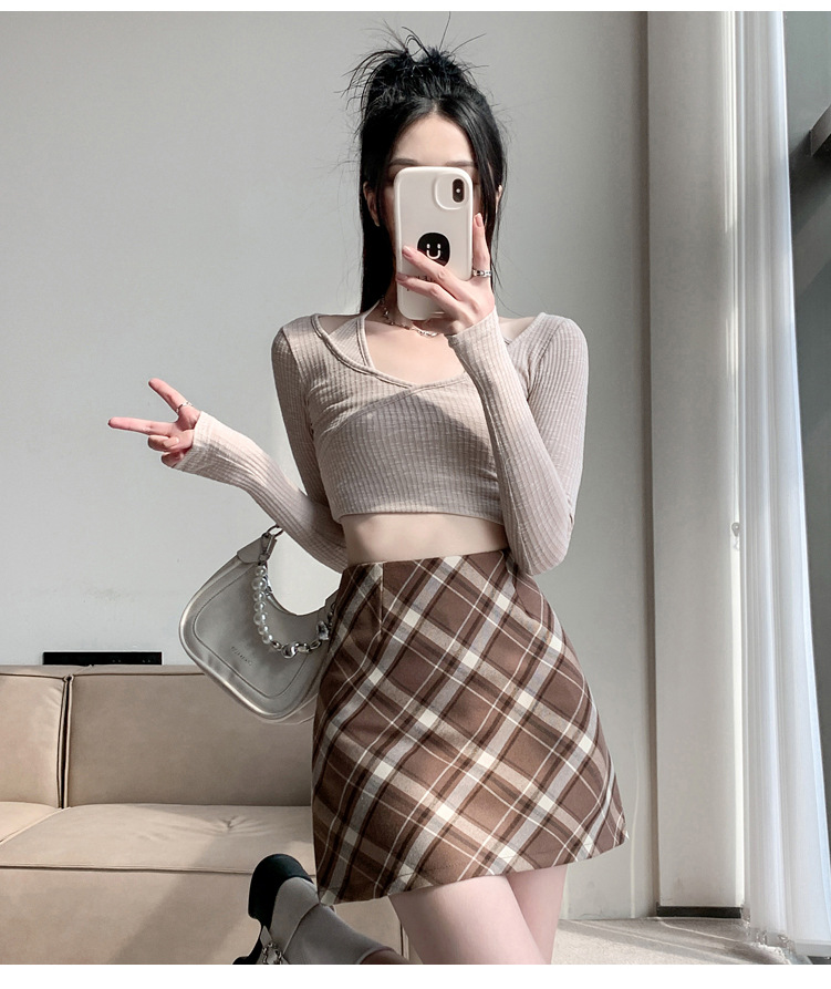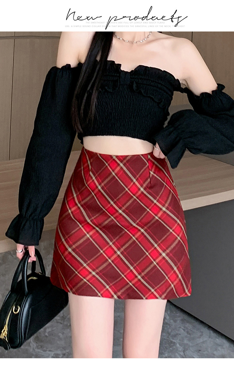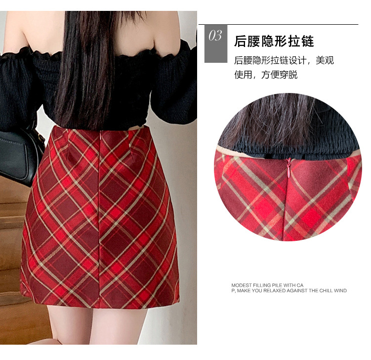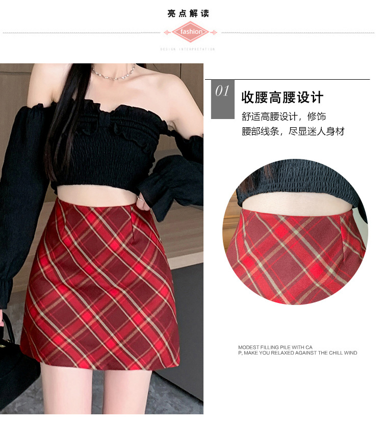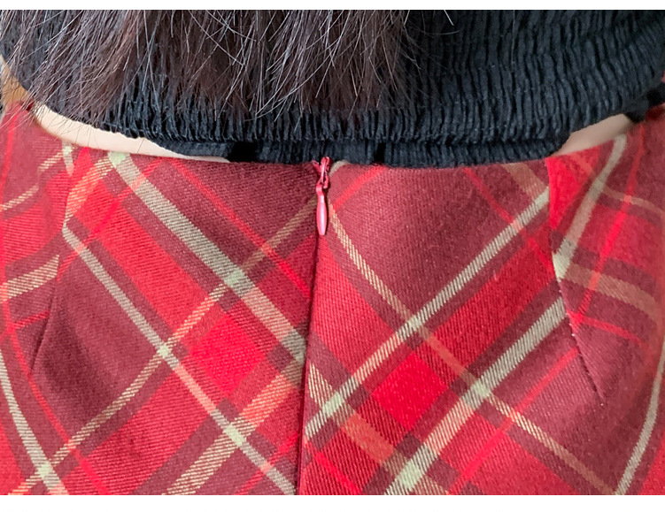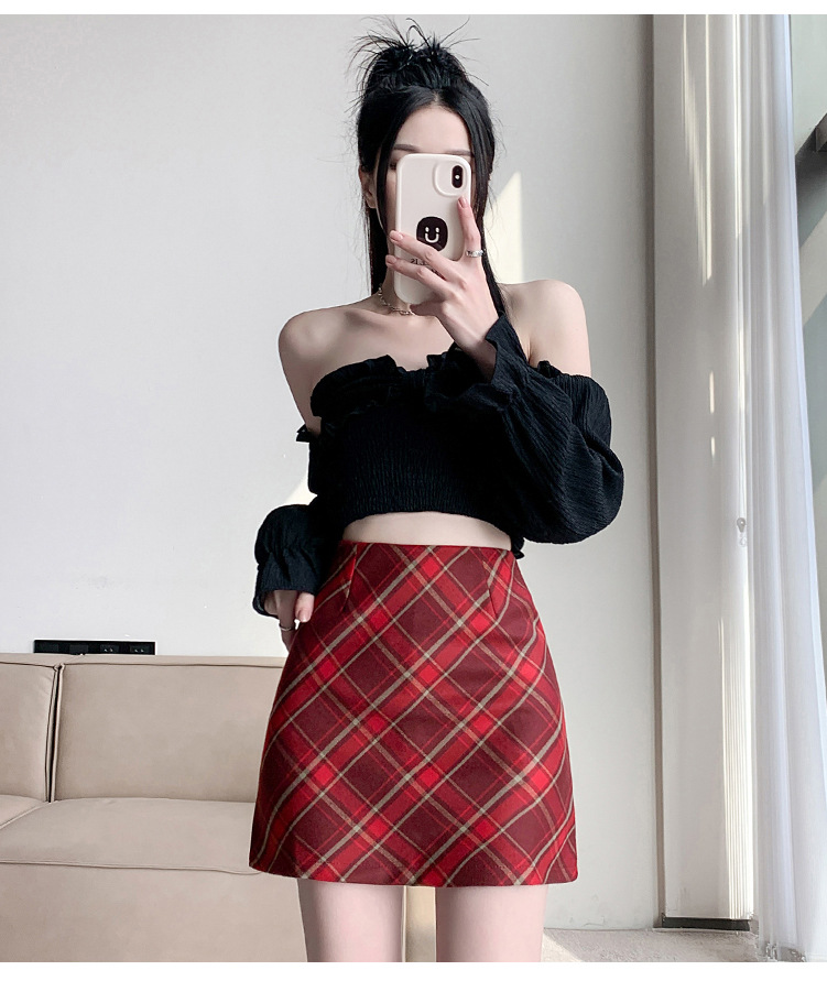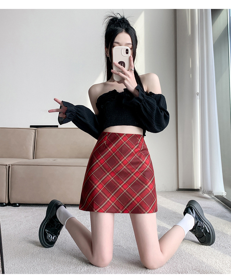 여성용 복고풍 격자 무늬 스커트 봄과 여름 새로운 높은 허리 슬리밍 엉덩이 스커트 작은 A 라인 스커트 도매스토어 가기