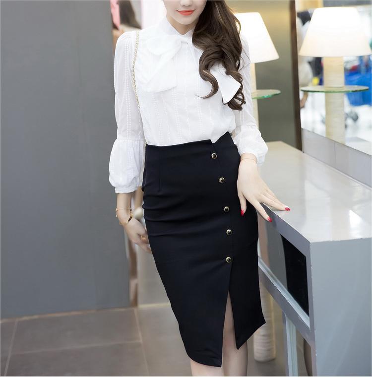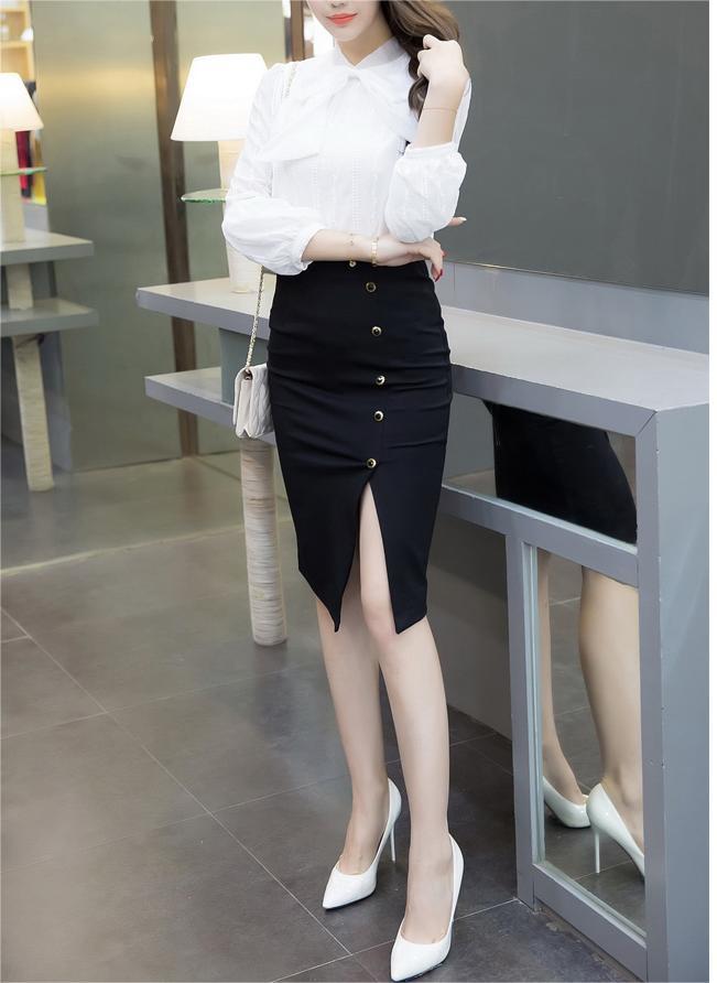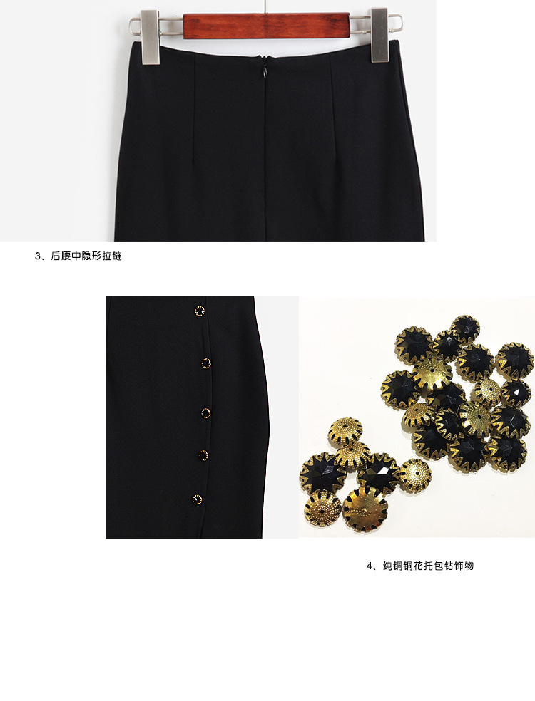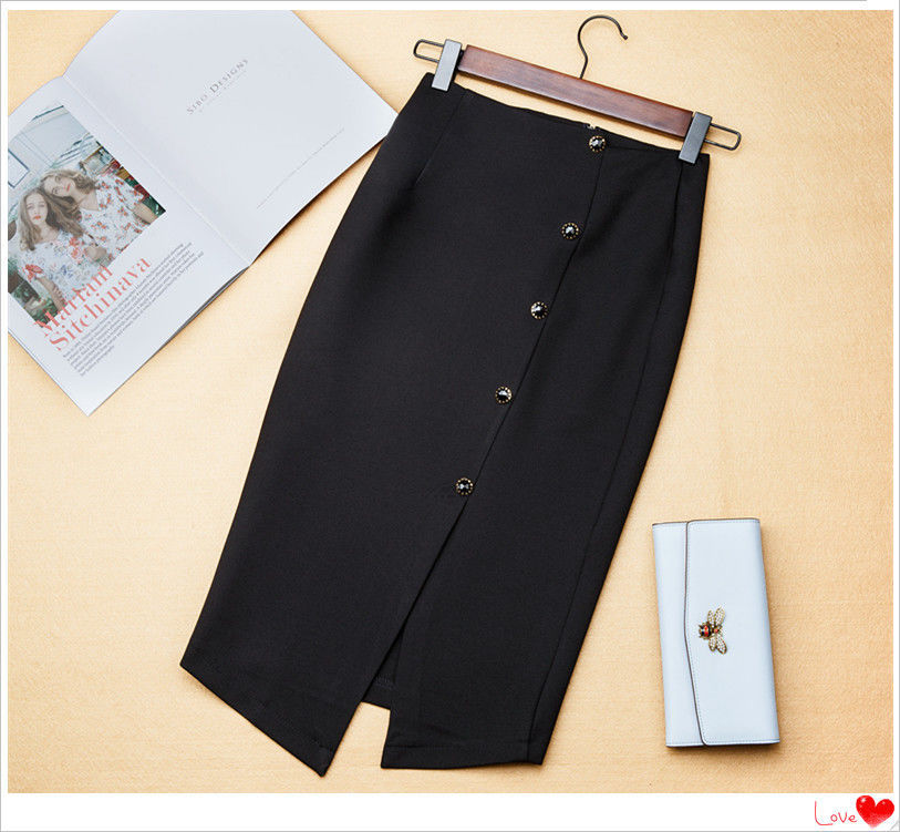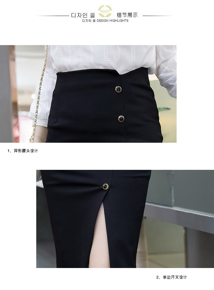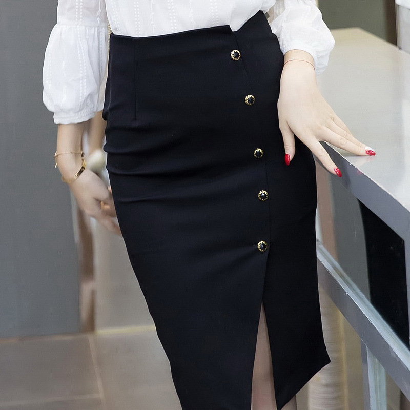 2024 봄 블랙 전문 슬리밍 섹시한 미디 스커트 우아한 사교계 스타일 스커트 스플릿 스커트스토어 가기