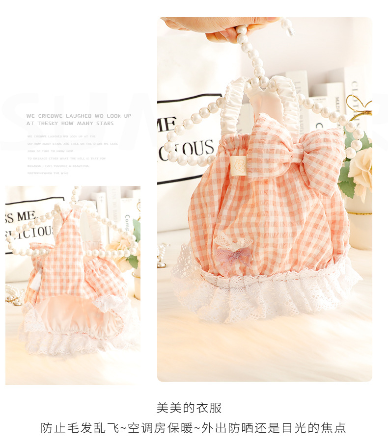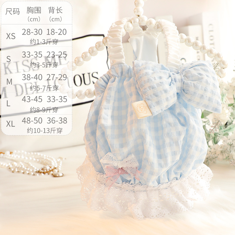 개 옷 봄과 여름 얇은 고양이 공주 원피스 큰 나비 스트랩 체크 무늬 스커트 작은 개 테디 애완 동물 5567스토어 가기