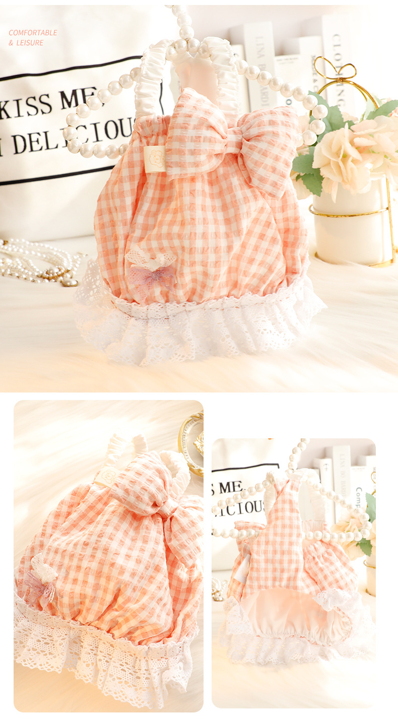 개 옷 봄과 여름 얇은 고양이 공주 원피스 큰 나비 스트랩 체크 무늬 스커트 작은 개 테디 애완 동물 5567