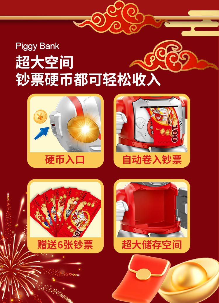 Ott 슈퍼 변형 남자 암호 지문 돼지 저금통 블루투스 노래 조기 교육 어린이 장난감 소년 선물 생일스토어 가기
