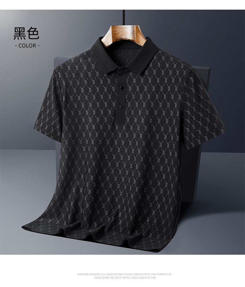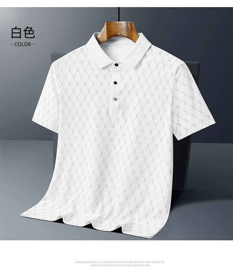 원활한 아이스 실크 고급 남성 폴로 셔츠 B 자형 남성 반팔 티셔츠 여름 비즈니스 옷깃 아빠가 여름 착용