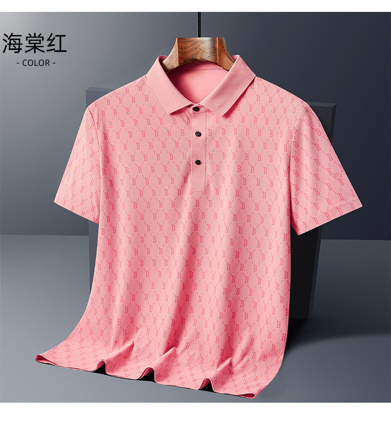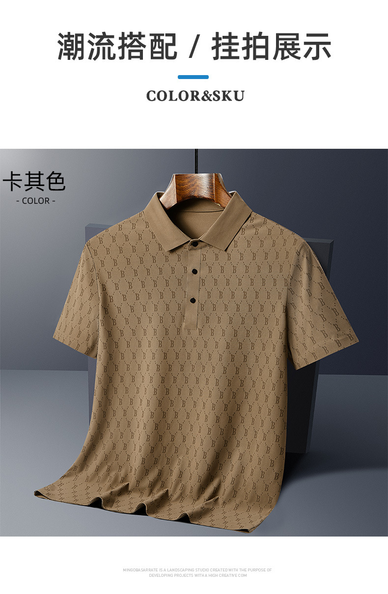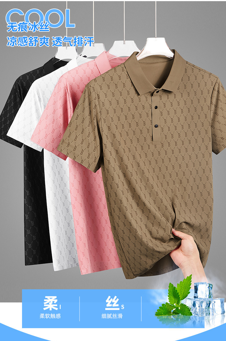 원활한 아이스 실크 고급 남성 폴로 셔츠 B 자형 남성 반팔 티셔츠 여름 비즈니스 옷깃 아빠가 여름 착용스토어 가기
