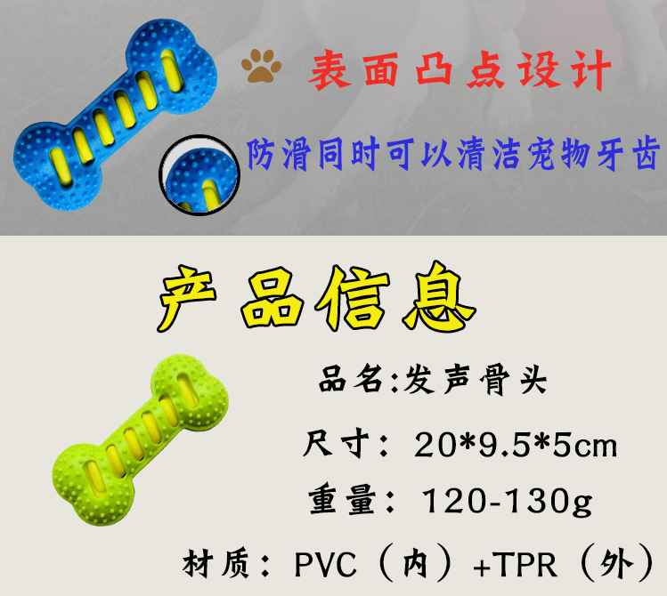 애완 동물 장난감 중대형 개 제조업체를위한 음향성 어금본 TPR 소재 물린 방지 및 건강 내성 어금니 바스토어 가기