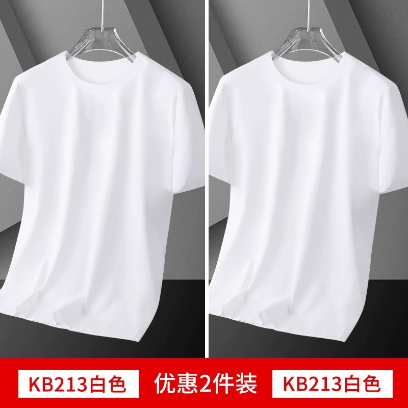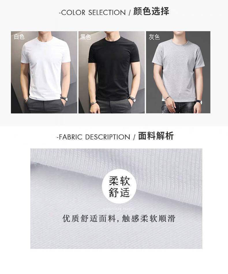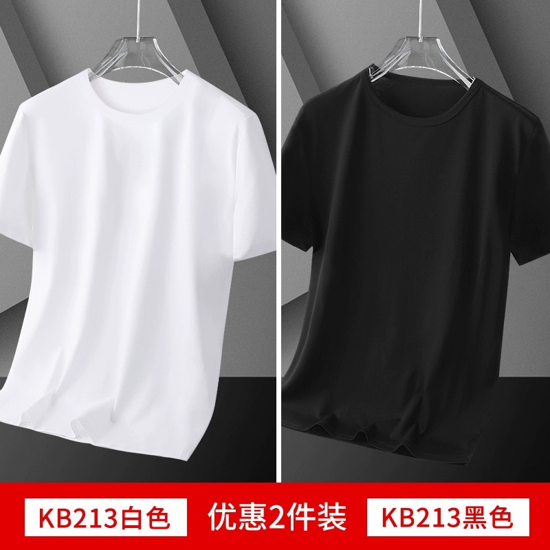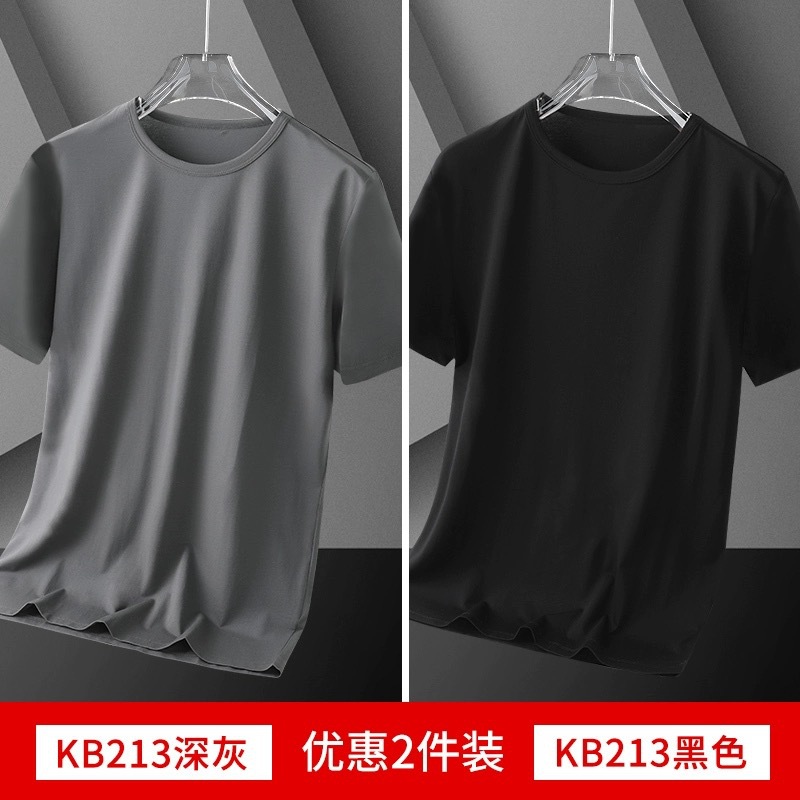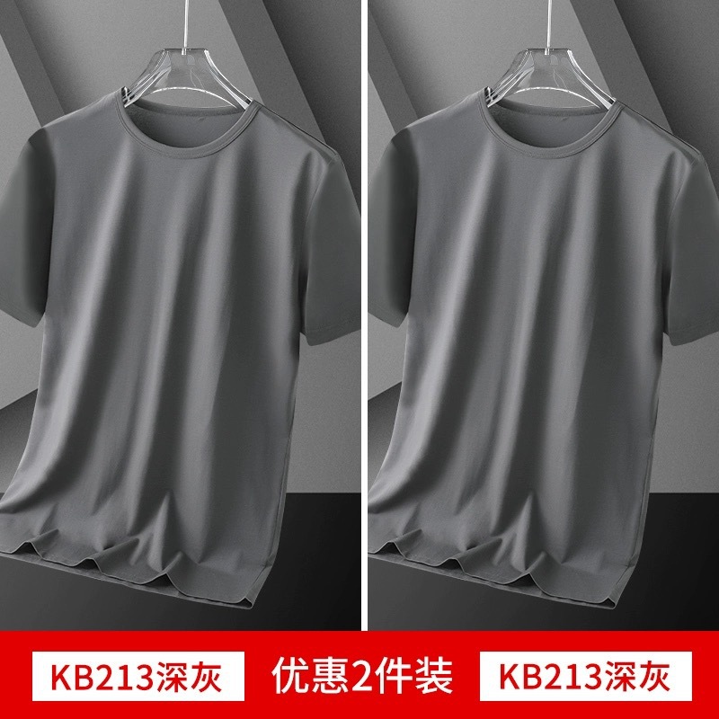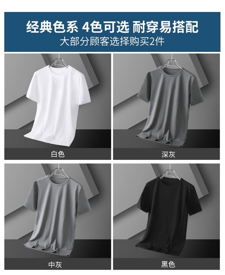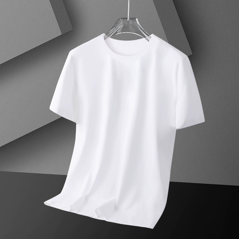 여름 얇은 남성 아이스 실크 반팔 바닥 셔츠 솔리드 컬러 라운드 넥 느슨한 탄성 속건성 짧은 티셔츠 심플 캐주얼스토어 가기