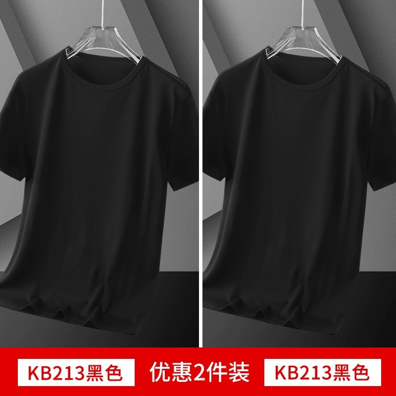 여름 얇은 남성 아이스 실크 반팔 바닥 셔츠 솔리드 컬러 라운드 넥 느슨한 탄성 속건성 짧은 티셔츠 심플 캐주얼