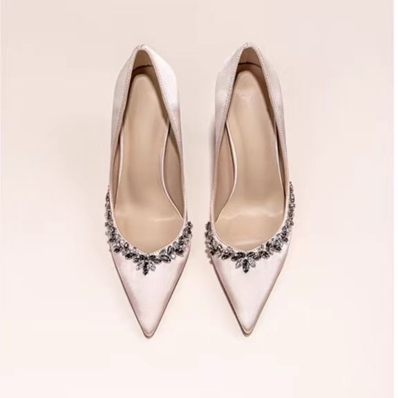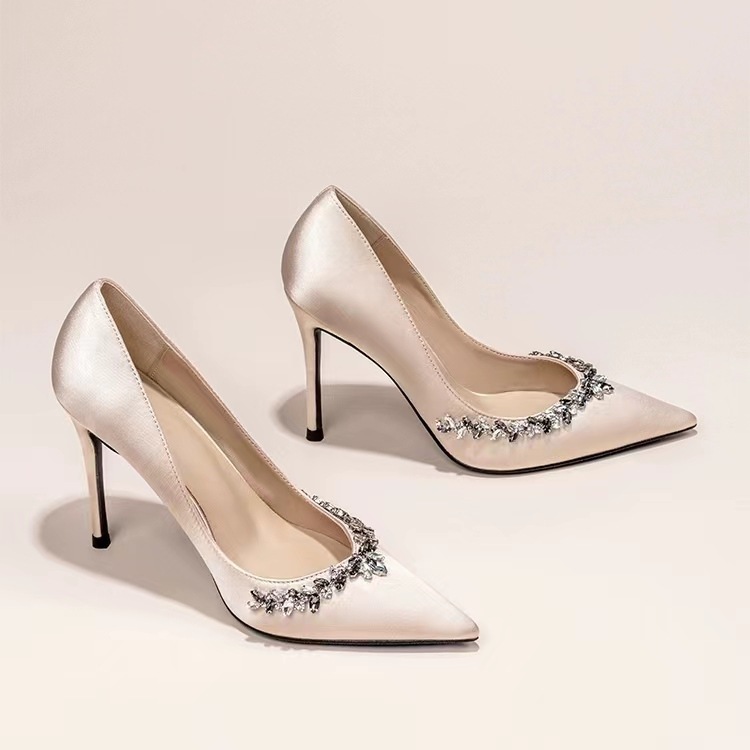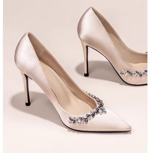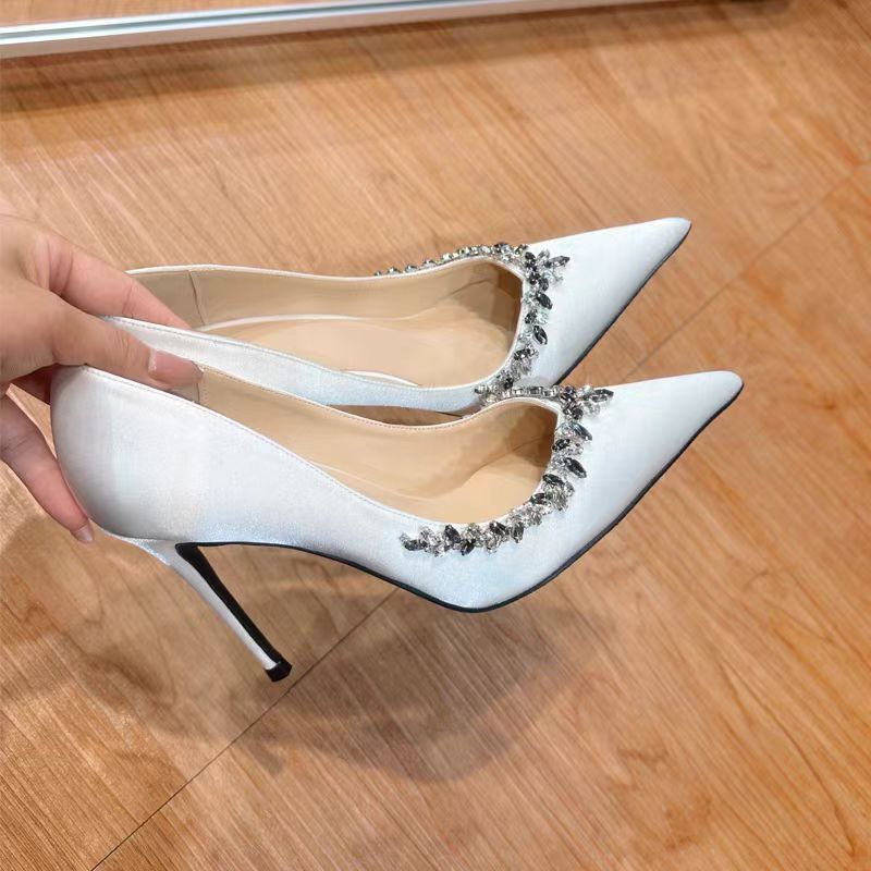 봄과 가을 2024 여성을위한 브라이트 스타 리버 하이힐 새로운 스틸레토 힐은 프랑스 기질 라인 석 싱글 레이어 신발 신부 들러리 웨딩 슈즈를 가리 켰습니다.스토어 가기