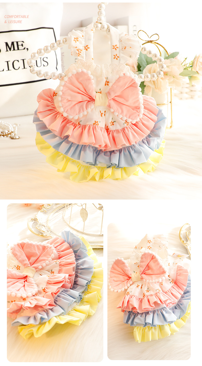 개 옷 봄과 여름 얇은 고양이 공주 화려한 달콤한 다층 로리타 작은 개 테디 애완 동물 5573