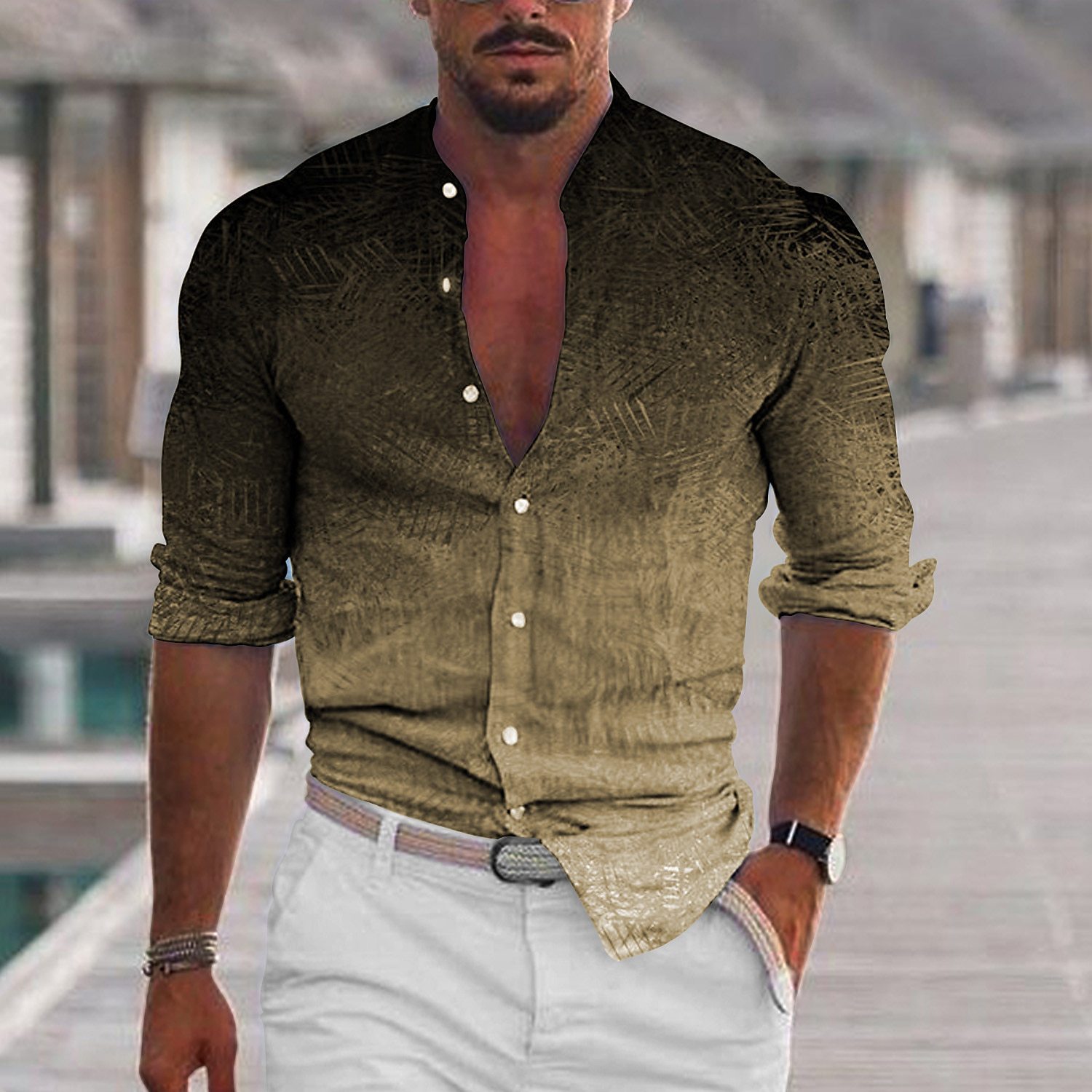 2024 유럽과 미국의 국경 간 아마존, 봄과 가을 그라데이션 남성 캐주얼 긴 소매 스탠드 칼라 셔츠 소원