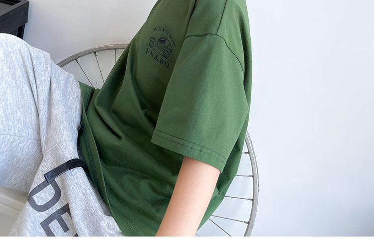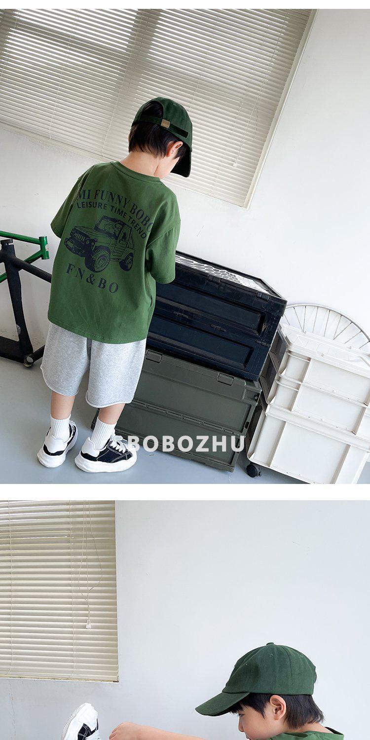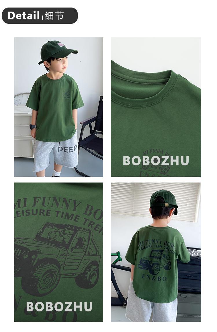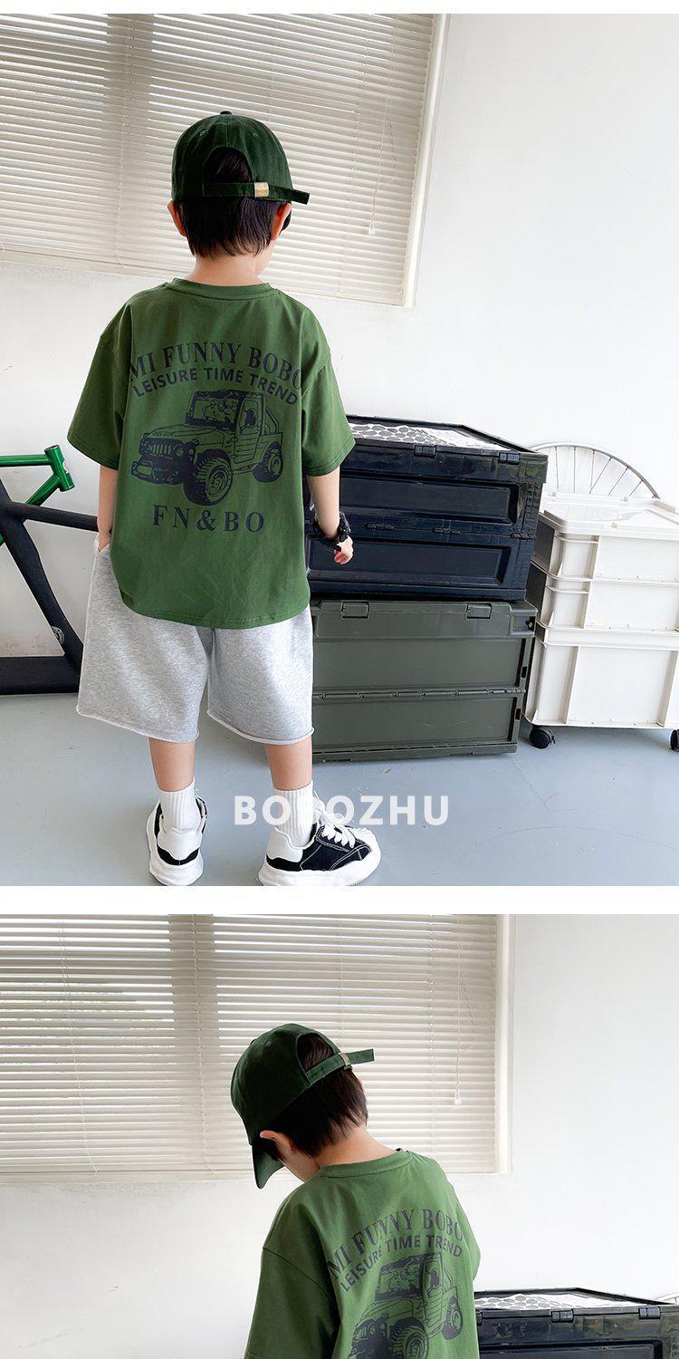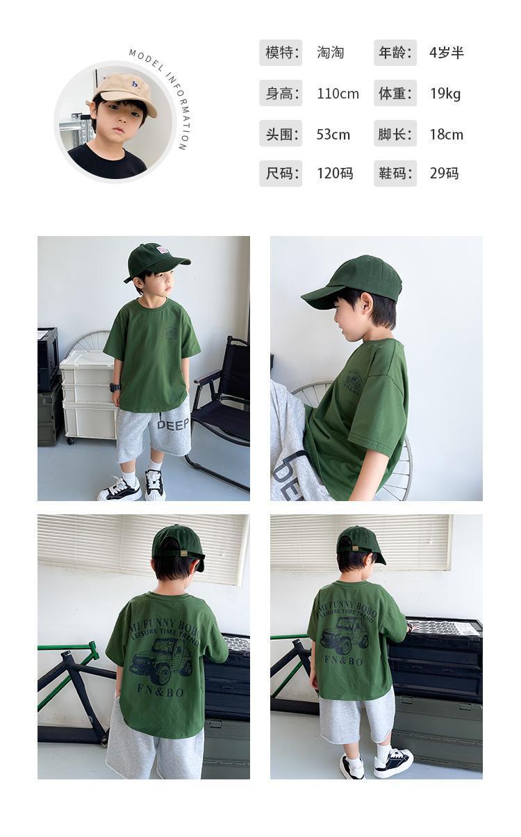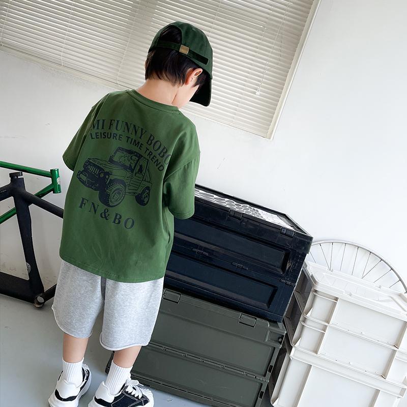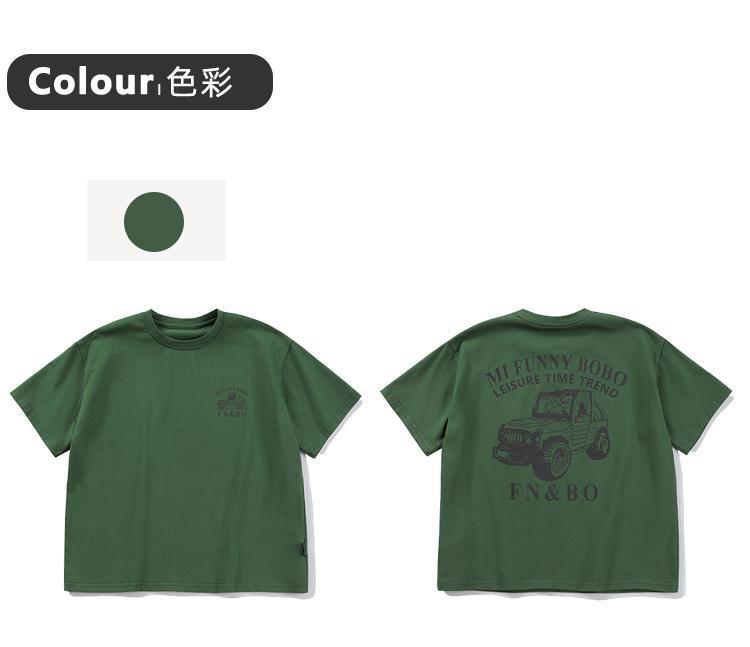 소년의 새로운 복고풍 자동차 패턴 티셔츠 큰 어린이 아기 여름 패션 느슨한 정상 남자의 개인 힙합 새로운스토어 가기
