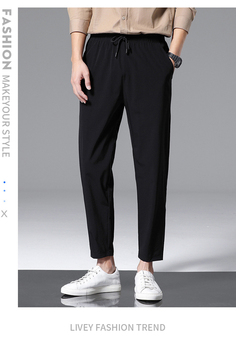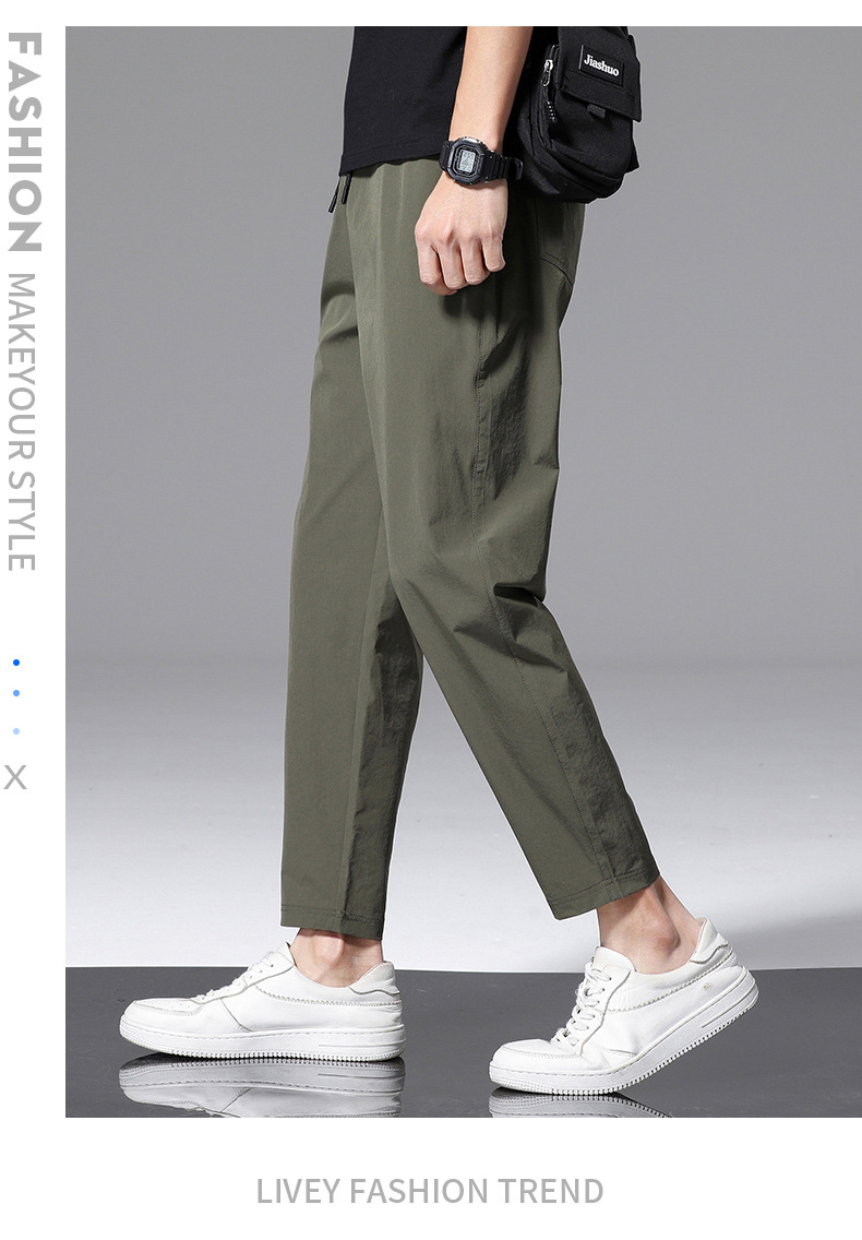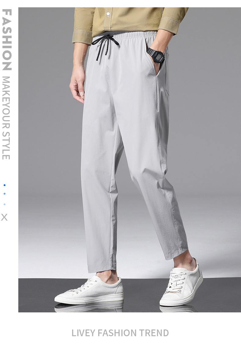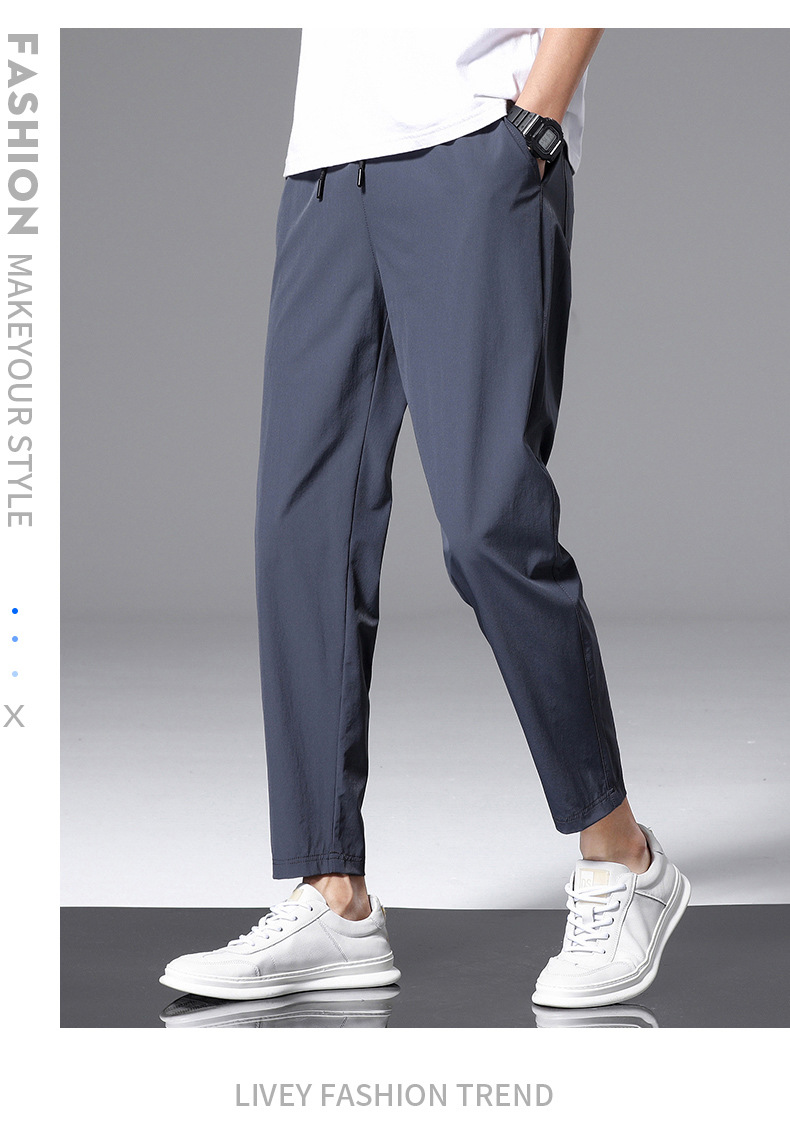 남성용 여름 아이스 실크 바지, 얇은 나일론 속건 스포츠 캐주얼 스트레이트 9부 바지, 시원한 에어컨 바지, 남성용 바지스토어 가기