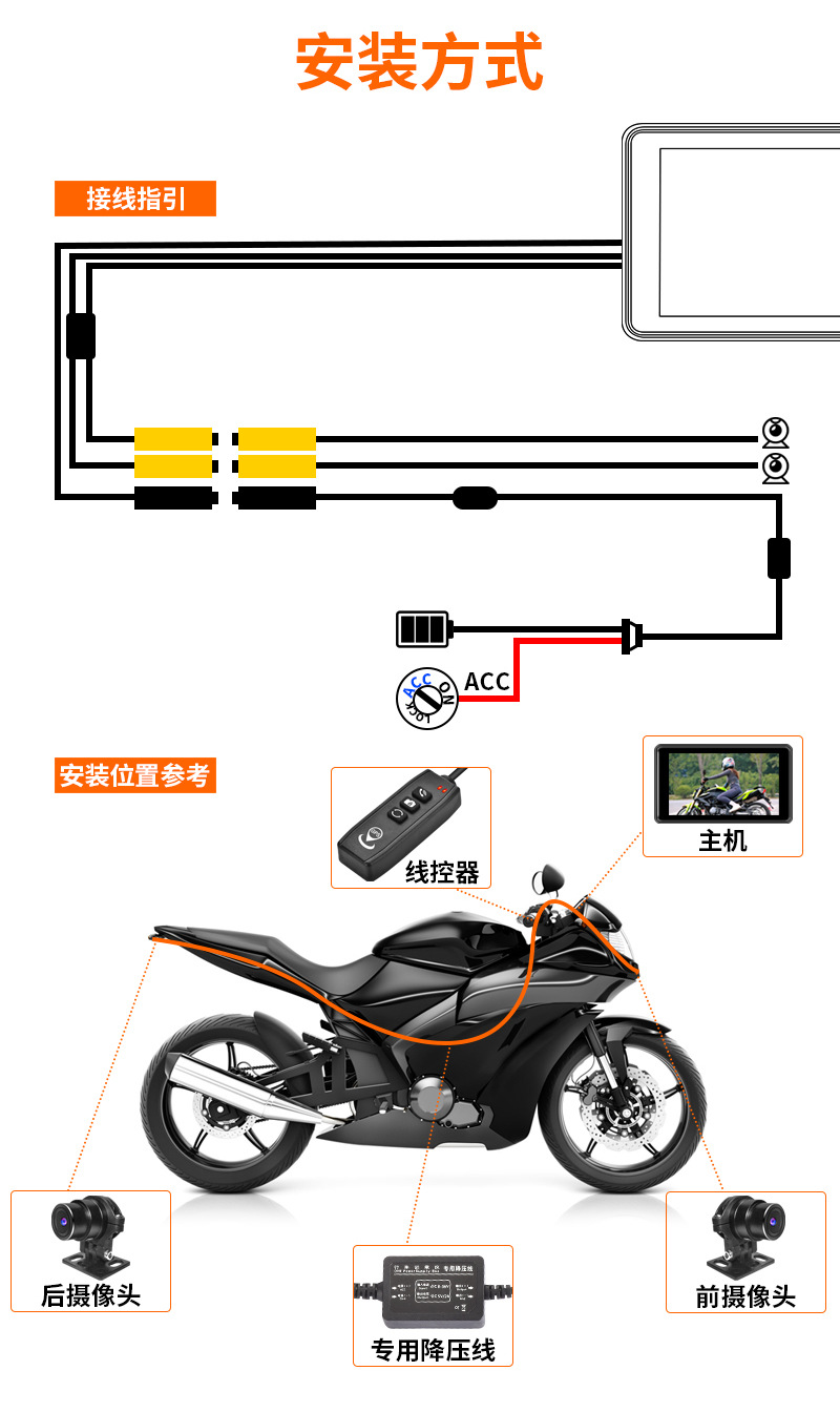 오토바이 운전 레코더 카플레이 프로젝션 스크린 내비게이션 1080p 타이어 압력 감지 방수 5 인치 대형 스크린 녹화