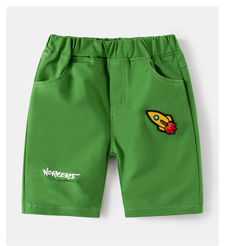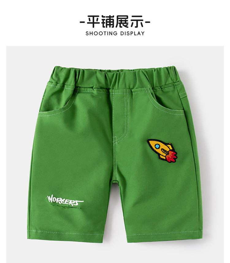 남학생 중간 바지 도매 2024 새로운 한국식 아기 단색 바지 어린이 로켓 라벨링 다섯 번째 바지 패션 도매스토어 가기