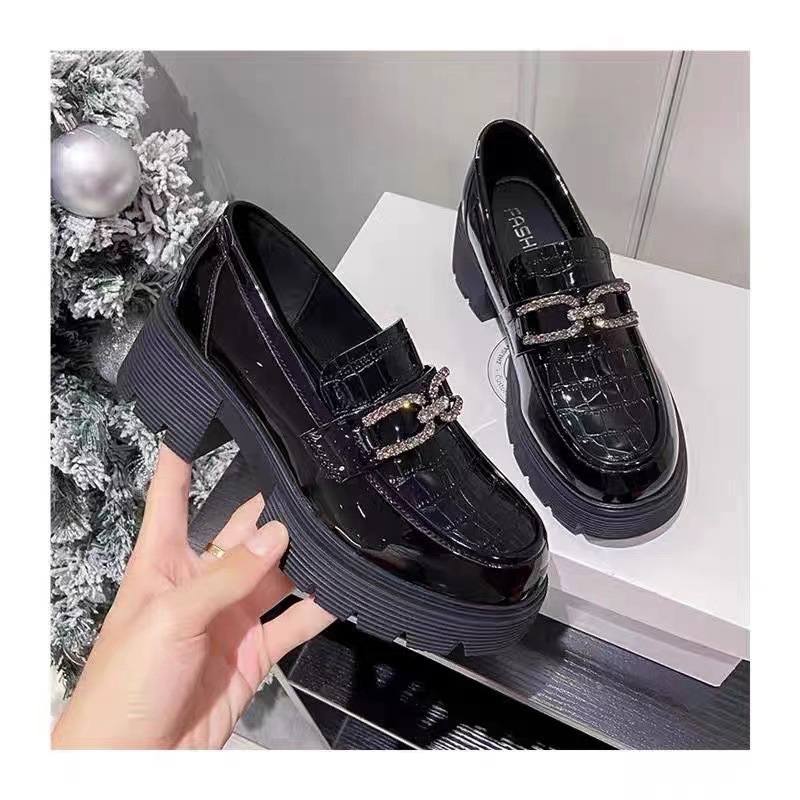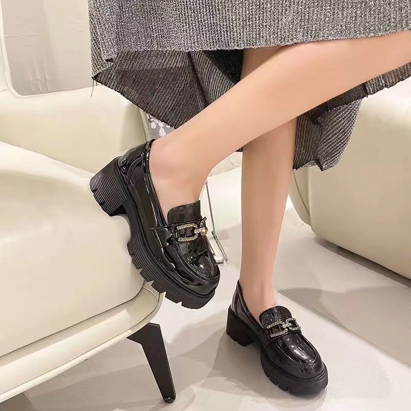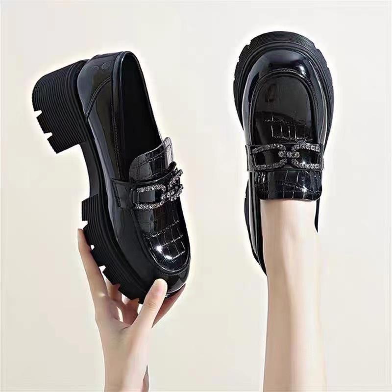 여성용 가죽 영국 스타일 가죽 신발 2024 새 봄 두꺼운 밑창 슬립 온 여성 신발 인기 고급 로퍼스토어 가기
