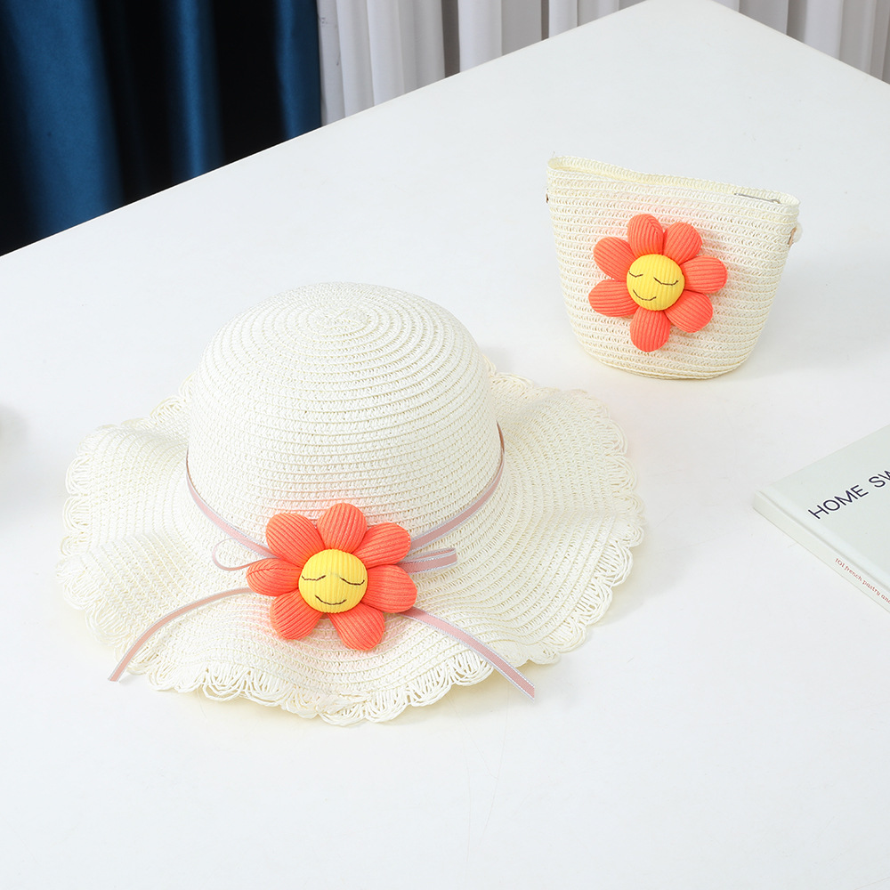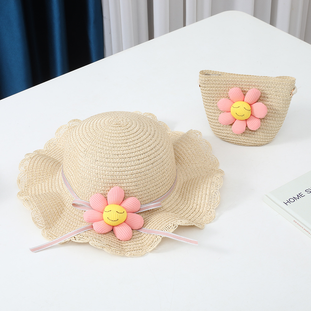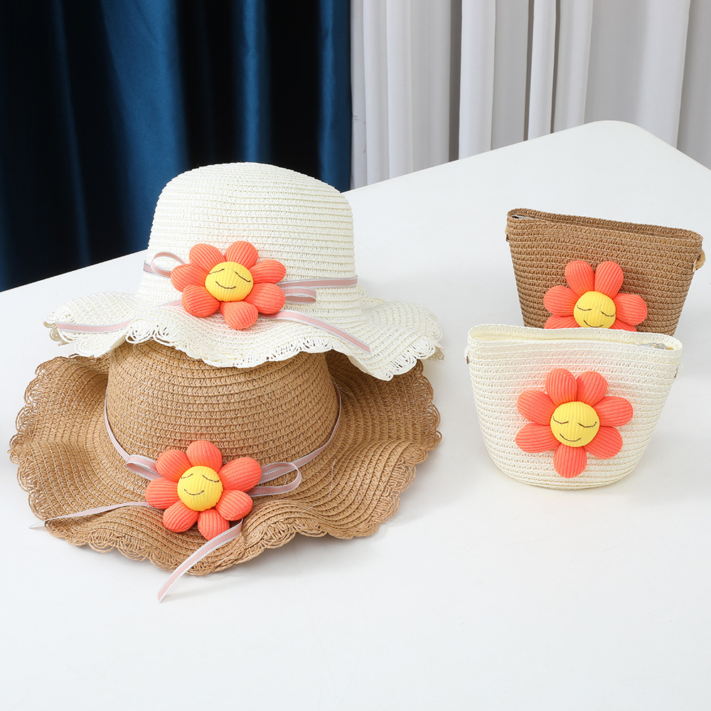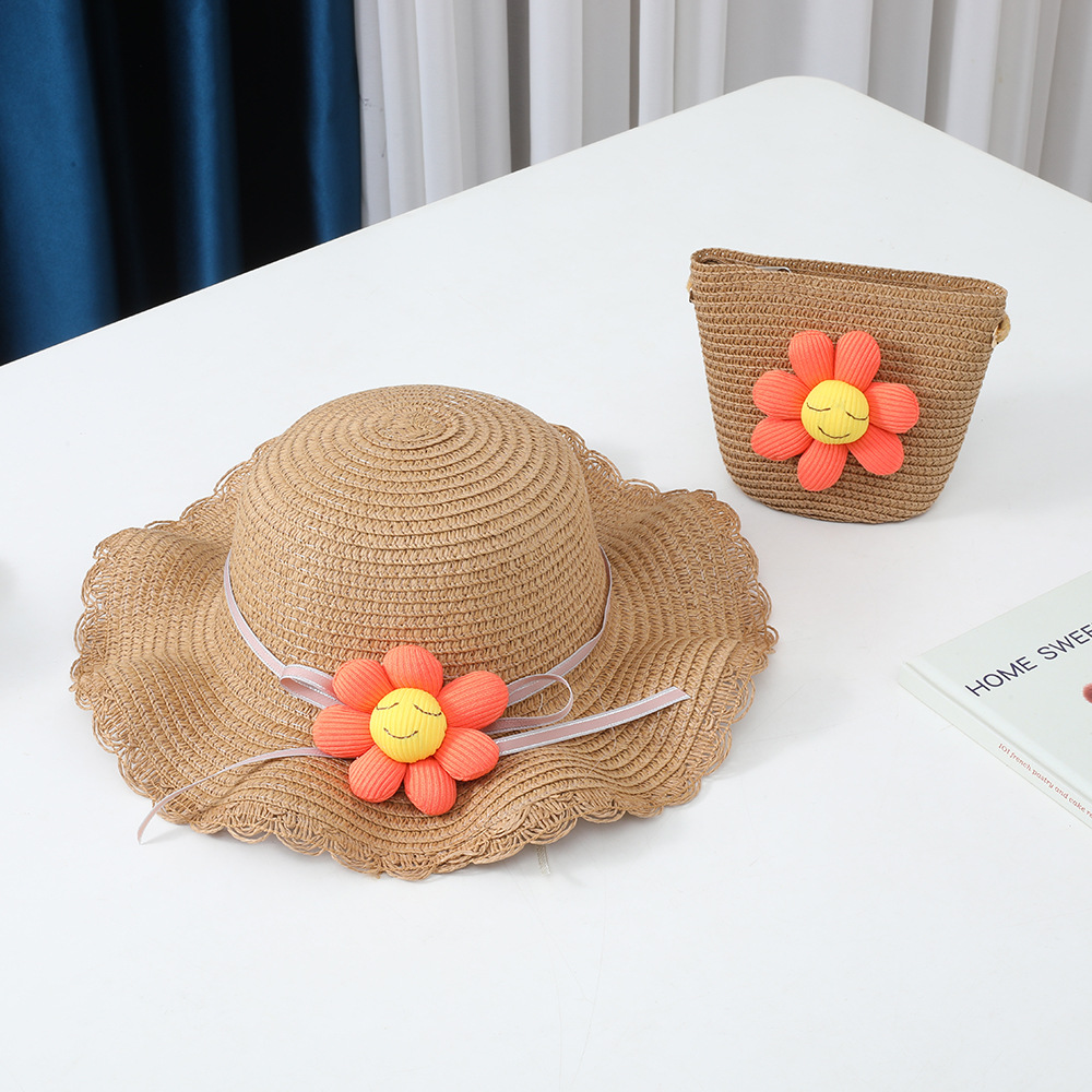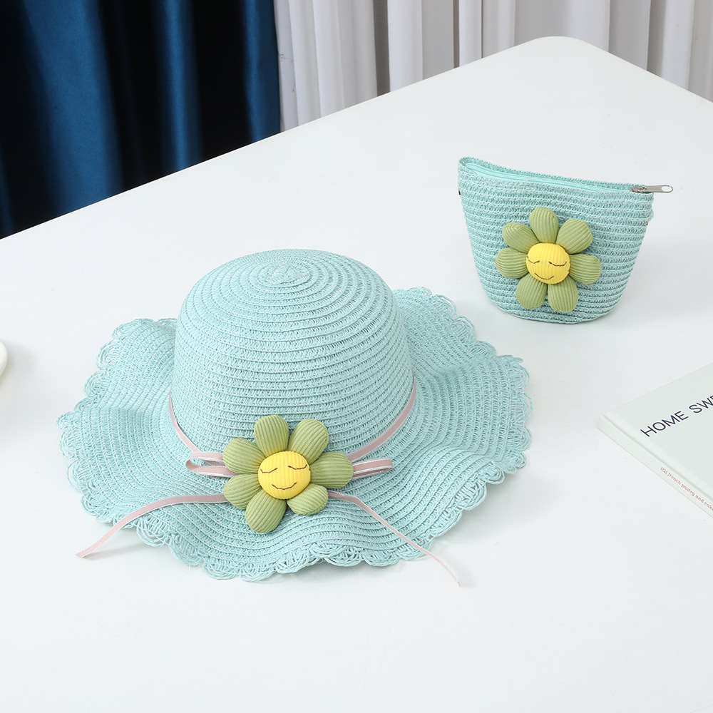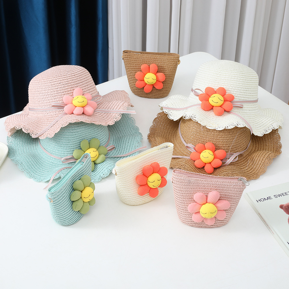 어린이 모자 가방 세트 여성 귀여운 공주 밀짚 가방 모자 아기 메신저 가방 소녀 해바라기 밀짚 모자