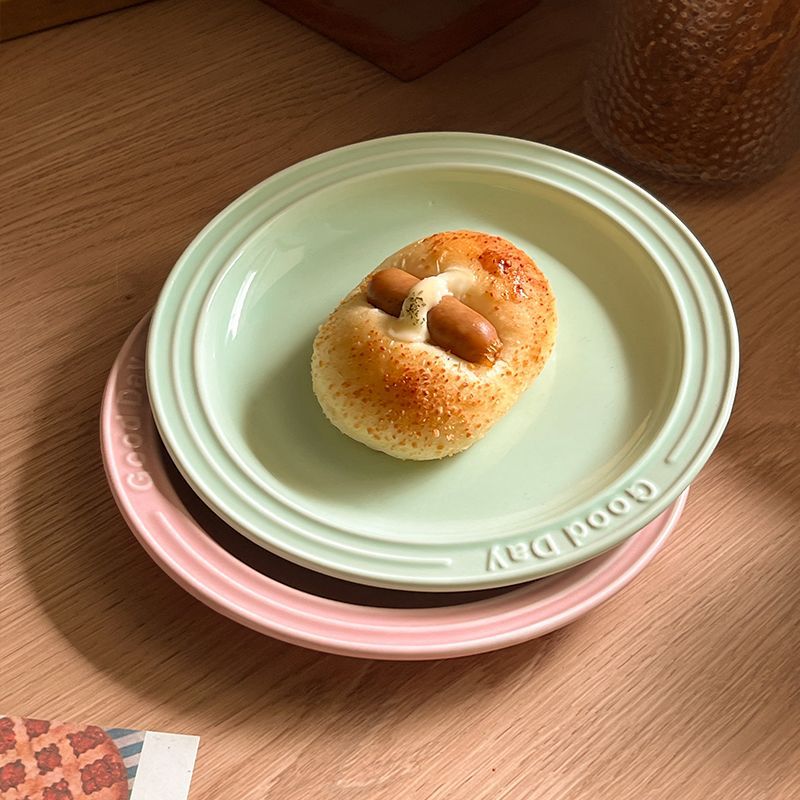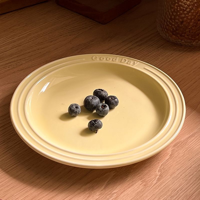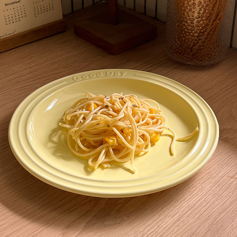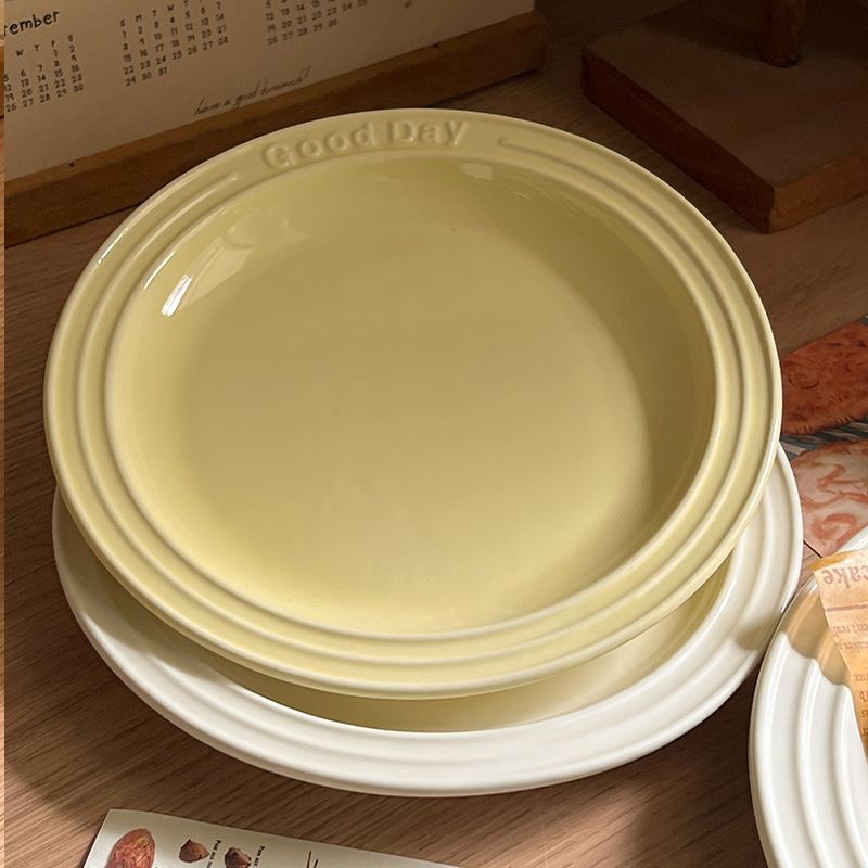 Ins 스타일 세라믹 접시 크림 양각 편지 식기 홈 서양 파스타 접시 디저트 아침 식사 접시스토어 가기