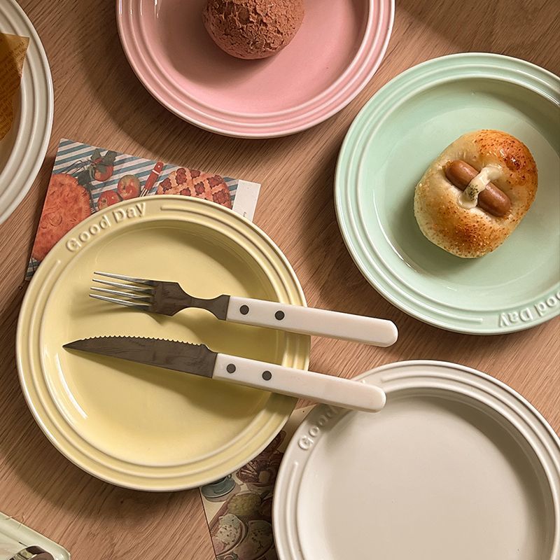 Ins 스타일 세라믹 접시 크림 양각 편지 식기 홈 서양 파스타 접시 디저트 아침 식사 접시