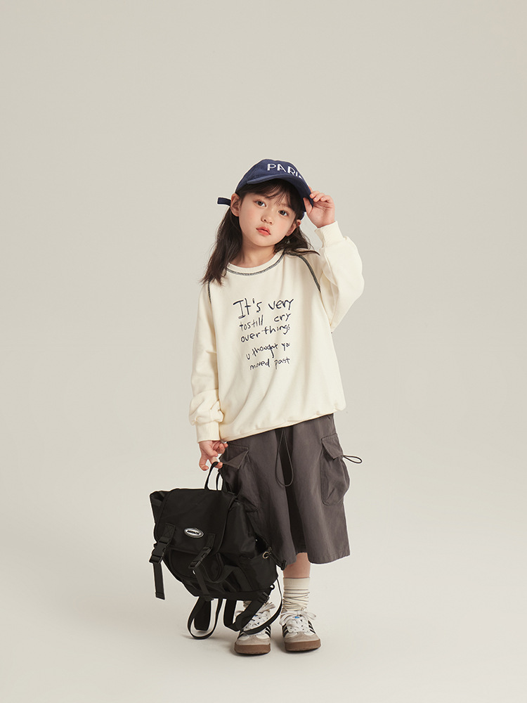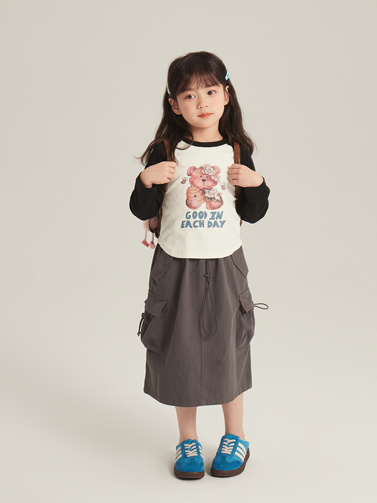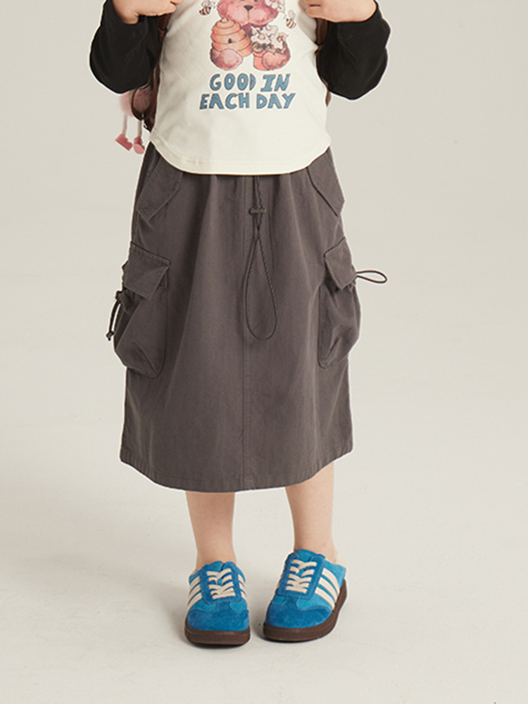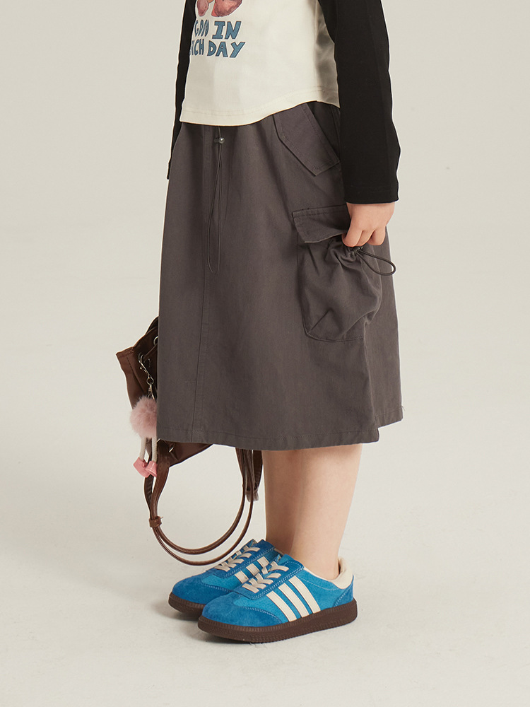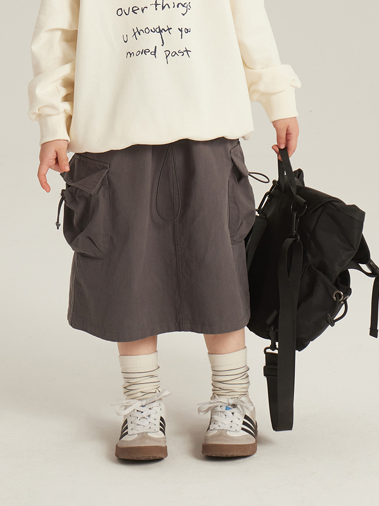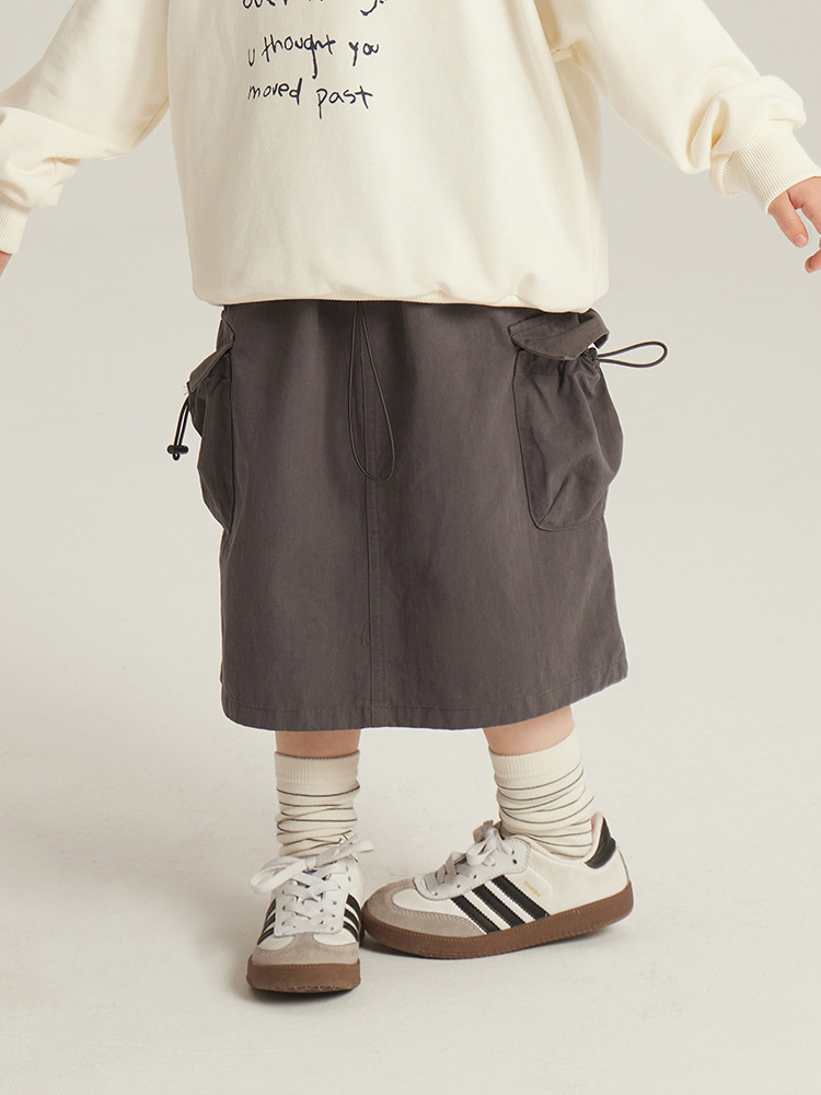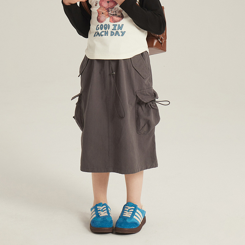 어린이 의류 소녀 한국식 스커트 봄 새로운 어린이 작업복 롱 스커트 미디어와 큰 어린이 패션 레트로 올 매치 스커트