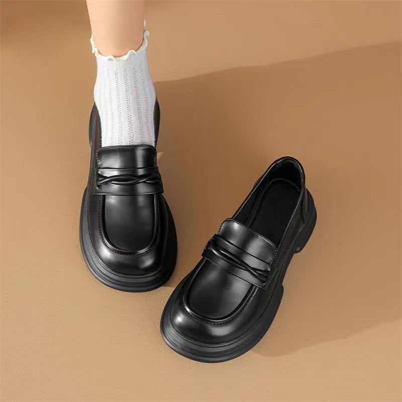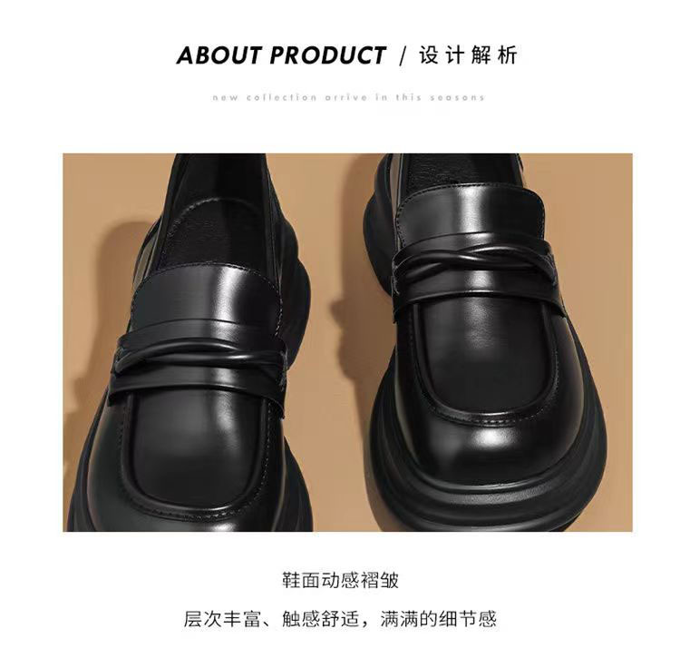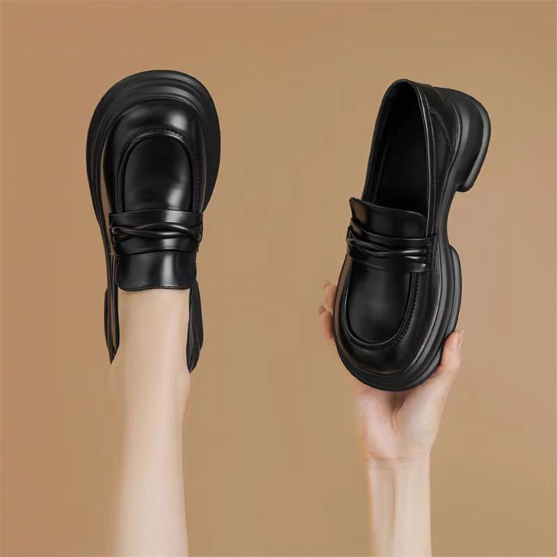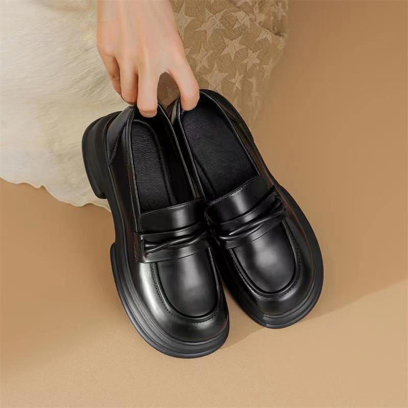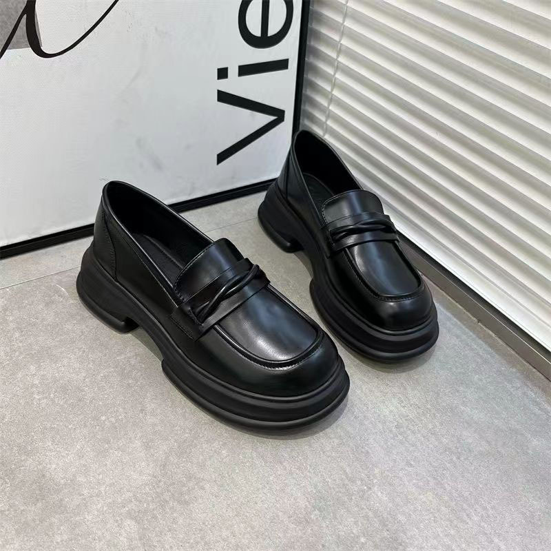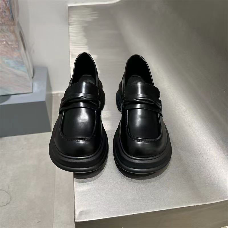 대외 무역 플랫폼 로퍼 여성 2024 봄 새로운 플랫폼 여성 신발 유행 영국 스타일 가죽 신발 블랙 단층 신발