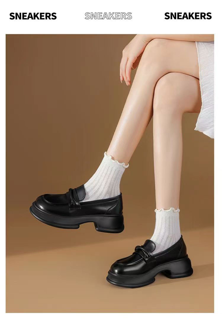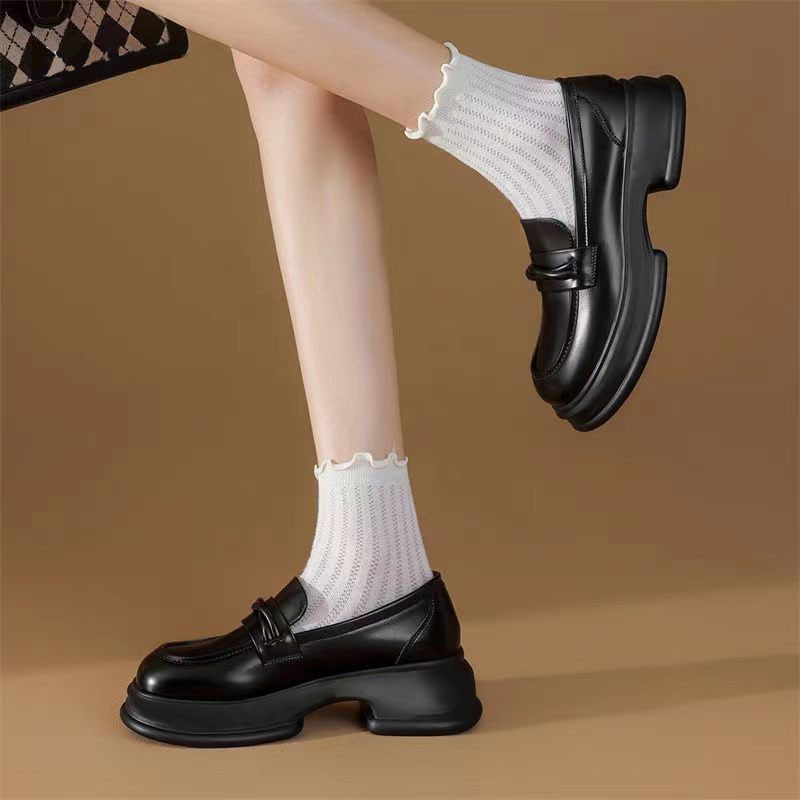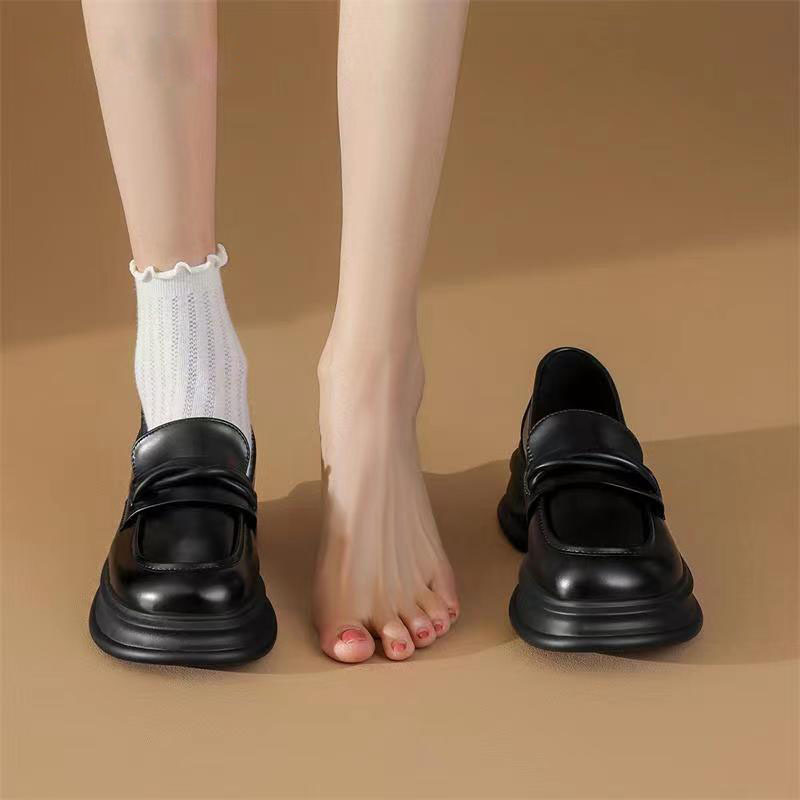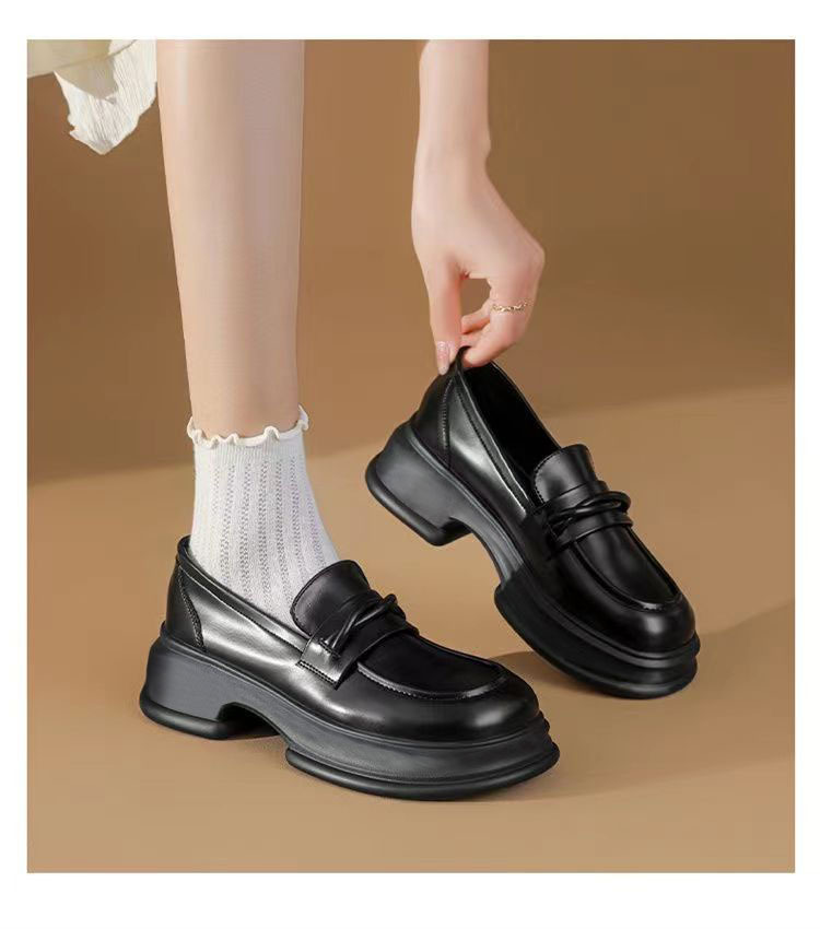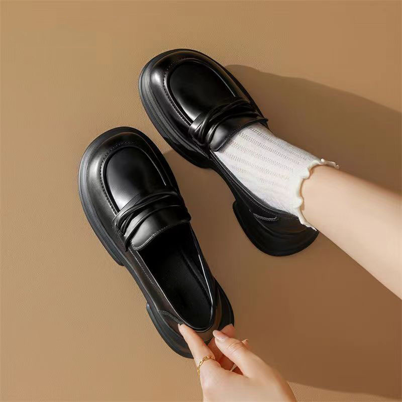 대외 무역 플랫폼 로퍼 여성 2024 봄 새로운 플랫폼 여성 신발 유행 영국 스타일 가죽 신발 블랙 단층 신발
