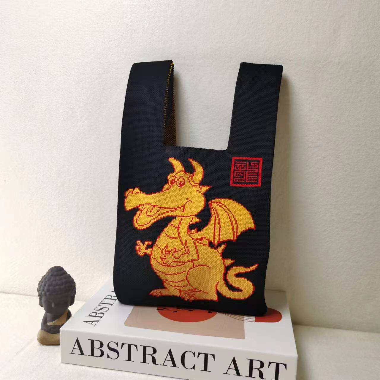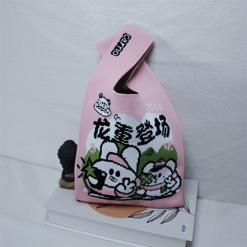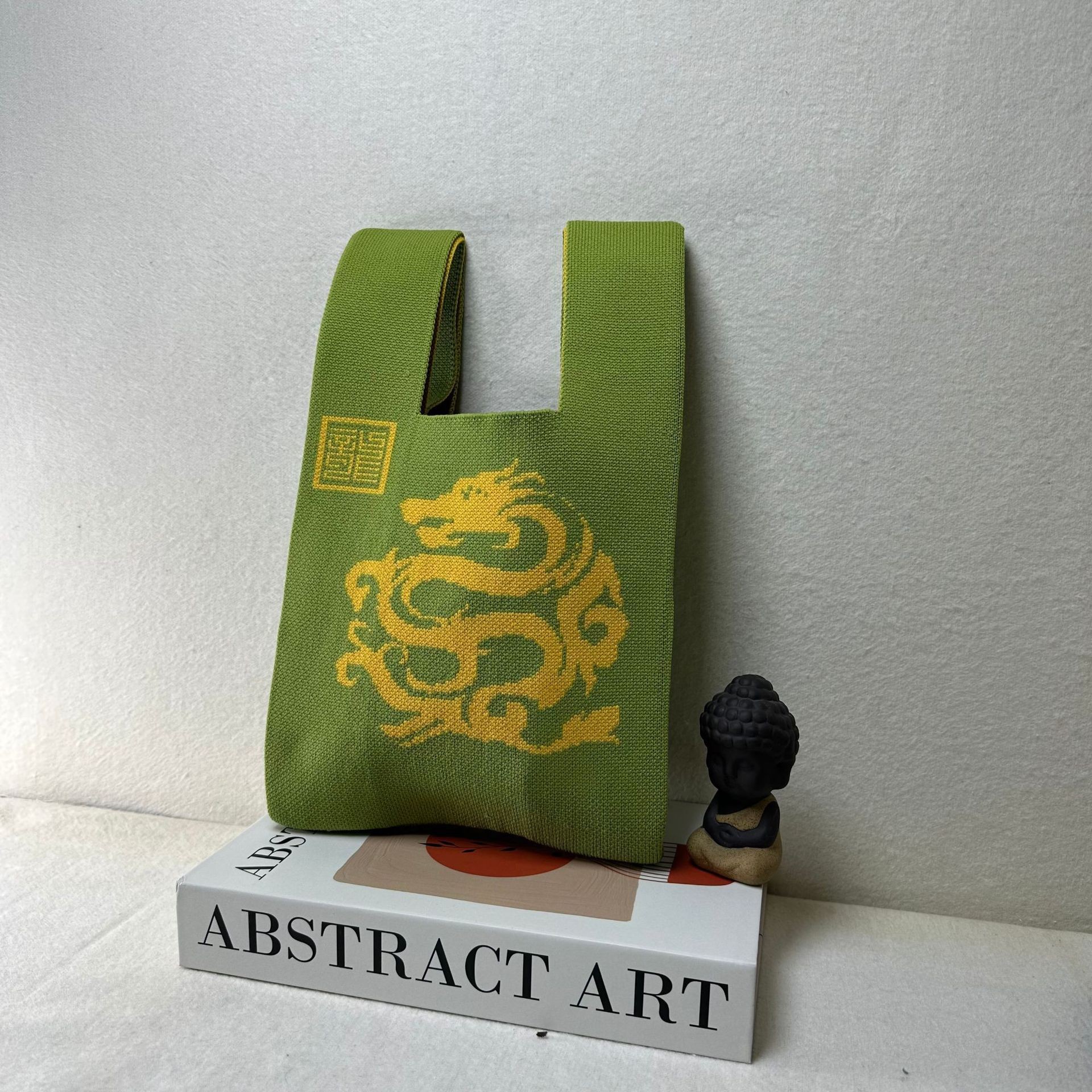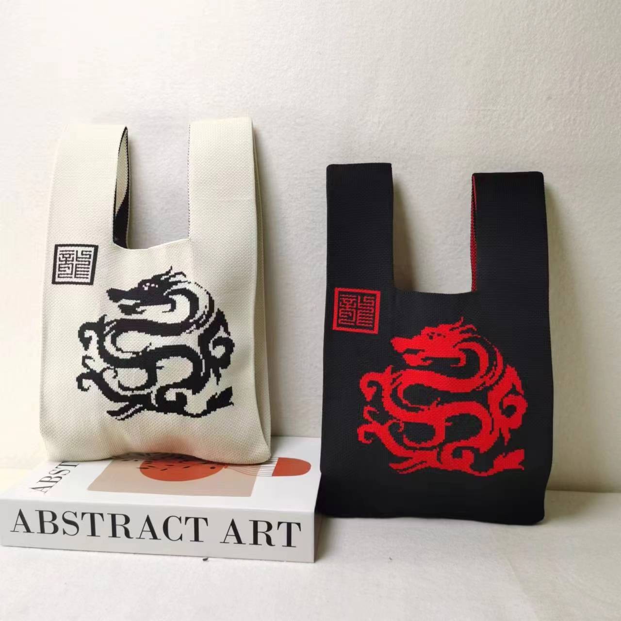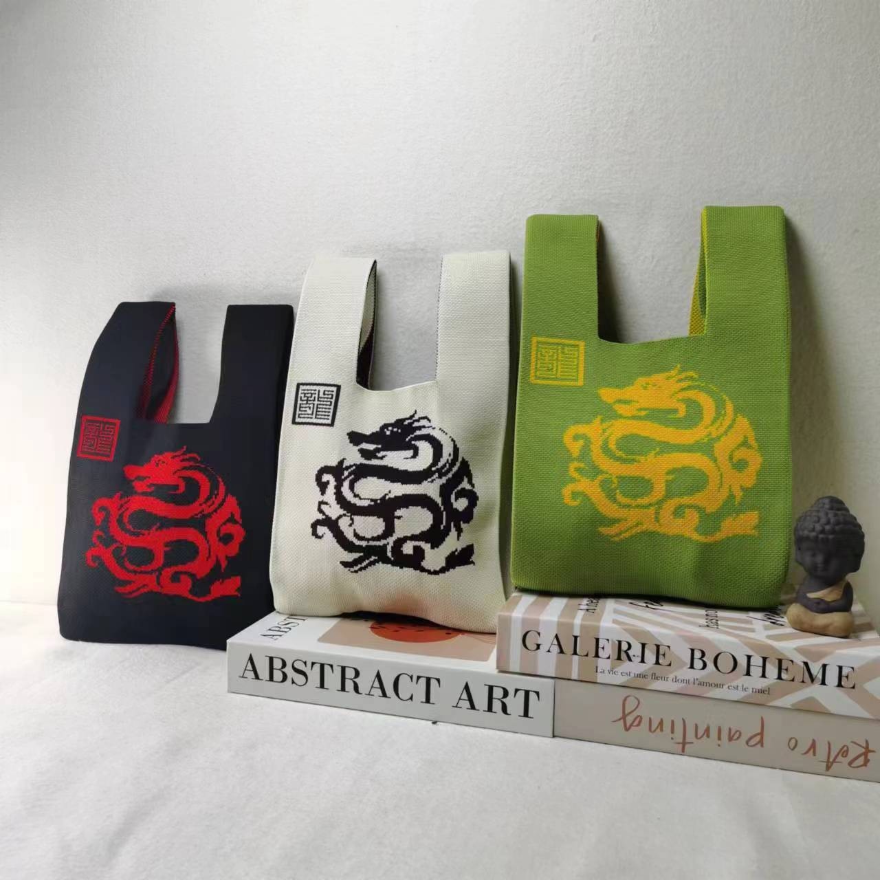2024 인기 니트 가방 드래곤 년 한정 여자 핸드백 일본과 한국 올 매치 여자 가방 새로운 인터넷 유명인 토트 백