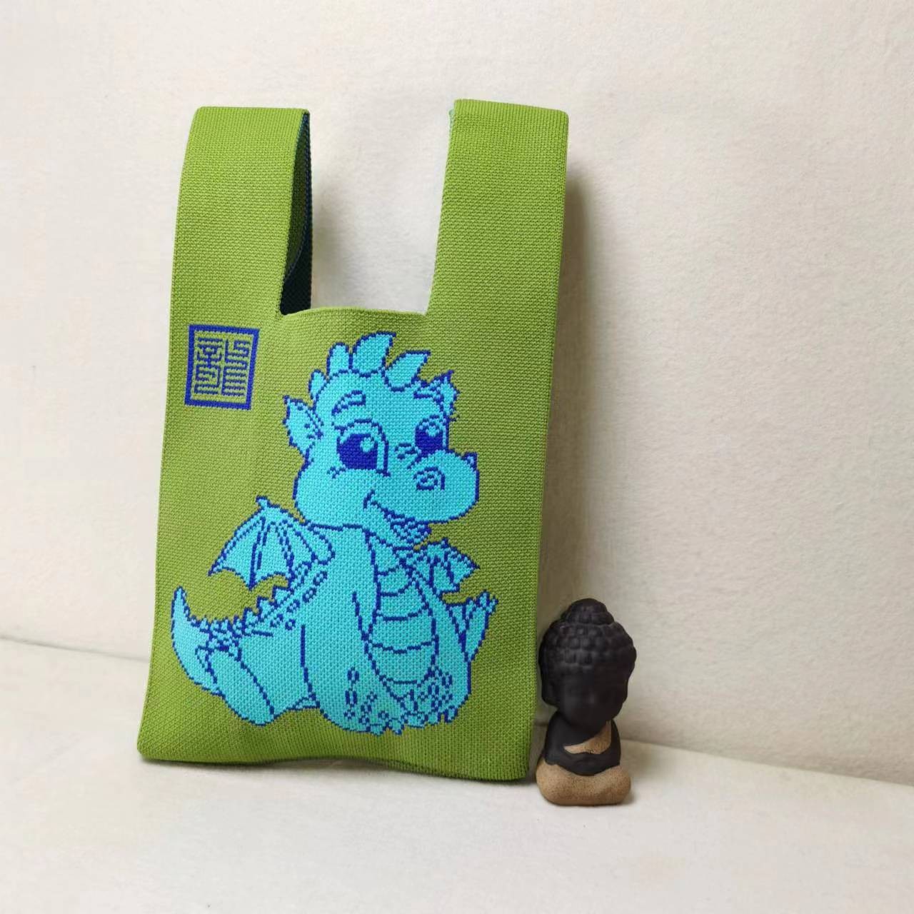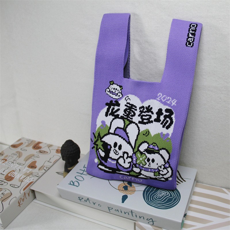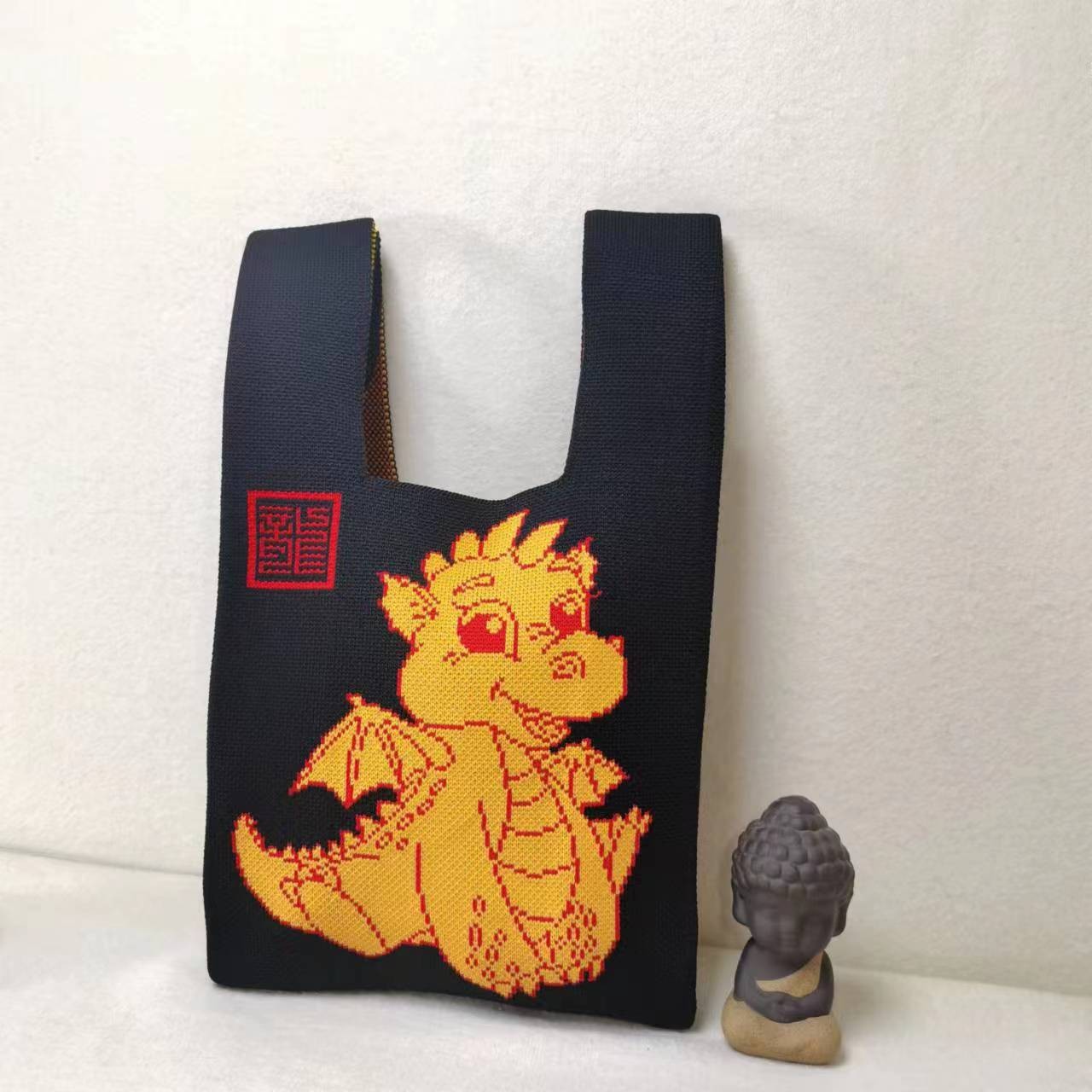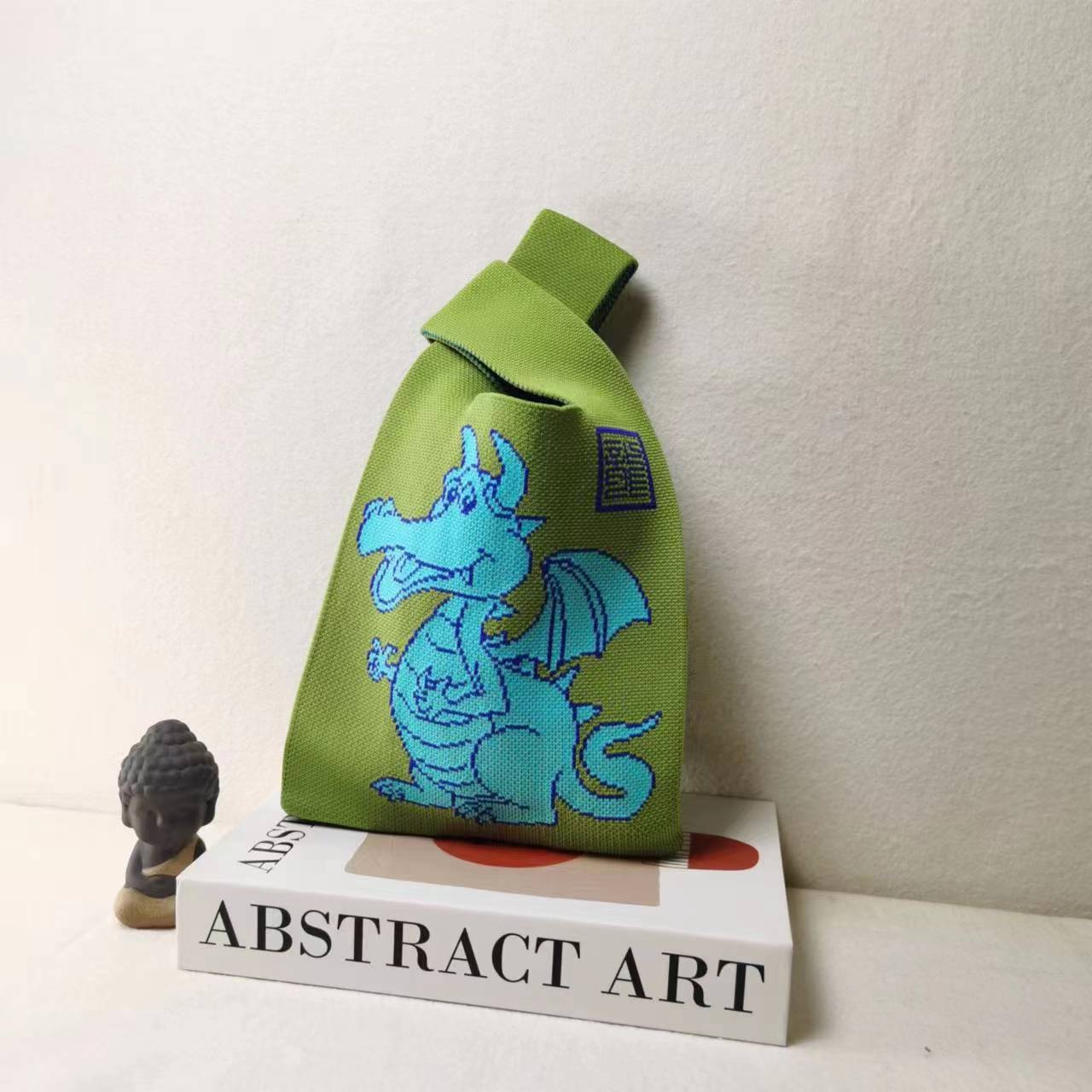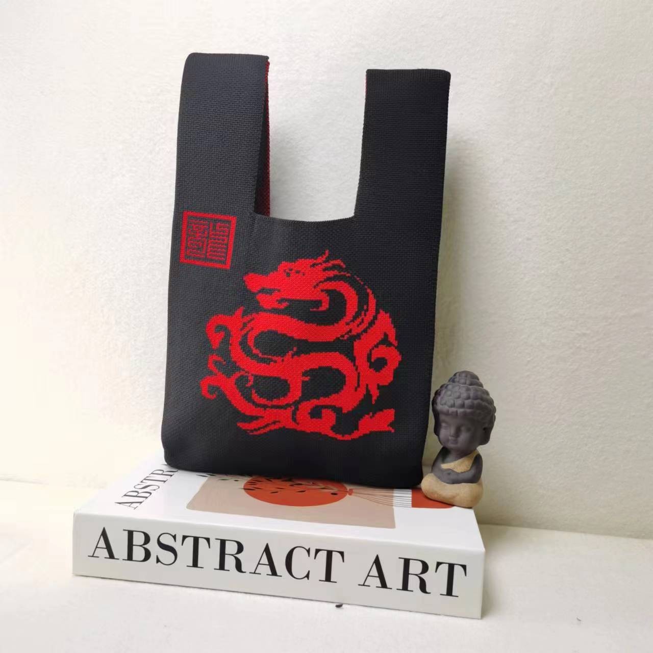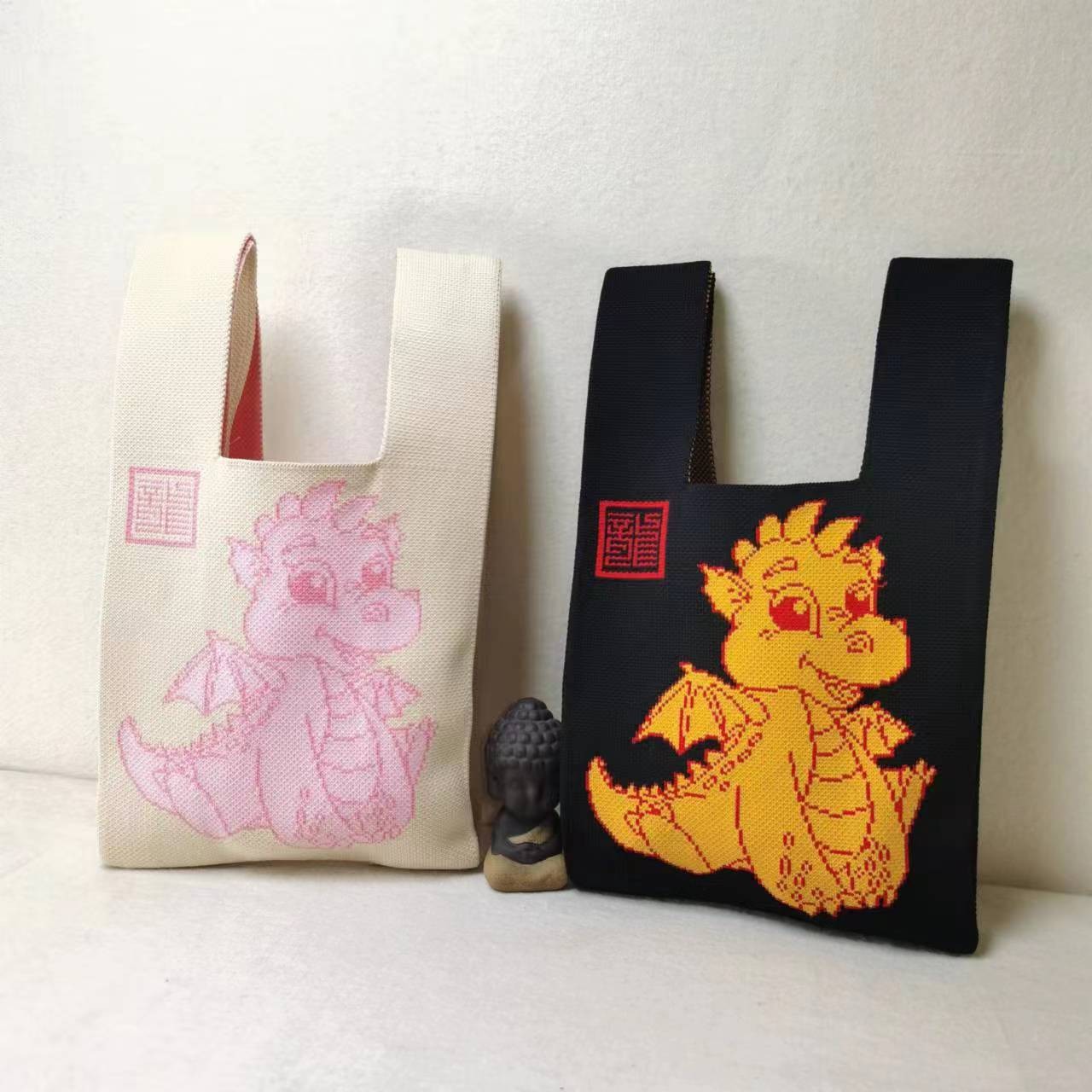 2024 인기 니트 가방 드래곤 년 한정 여자 핸드백 일본과 한국 올 매치 여자 가방 새로운 인터넷 유명인 토트 백