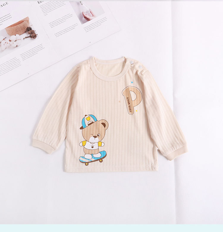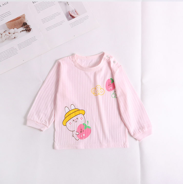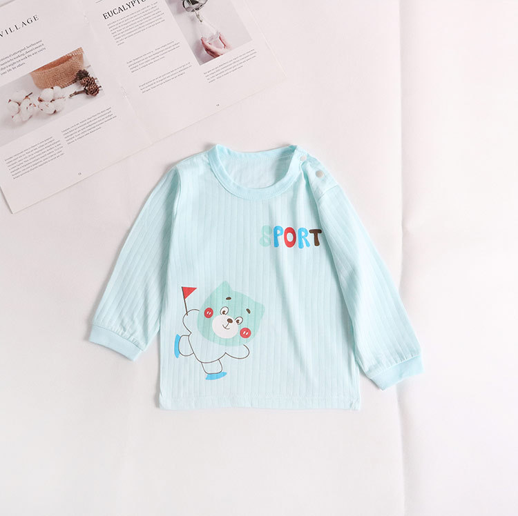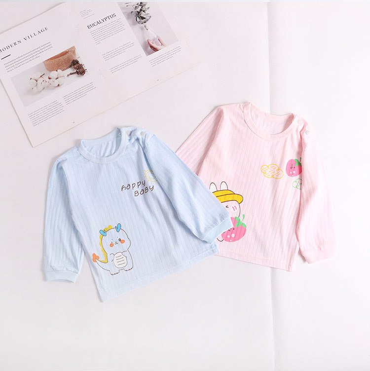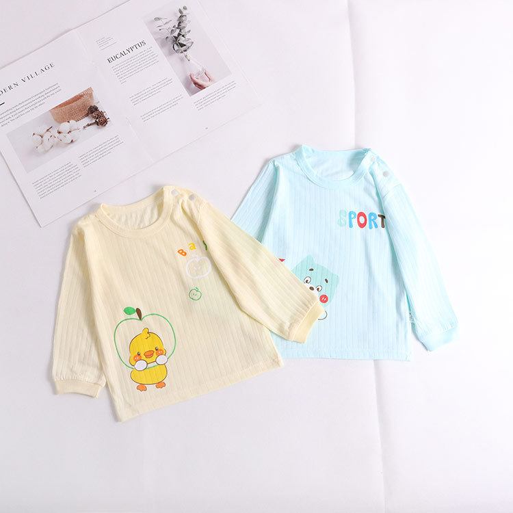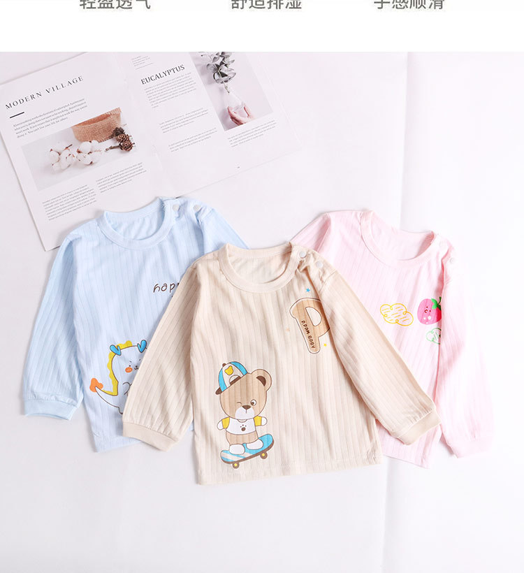 베이비 탑 봄과 여름 얇은 남성과 여성의 대나무 섬유 둥근 목 어깨 버클 유아 0-3 세 바닥 긴팔 티셔츠