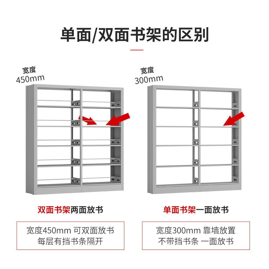 钢制书架学校图书馆书架单双面书架阅览室铁皮收纳架落地书架厂家