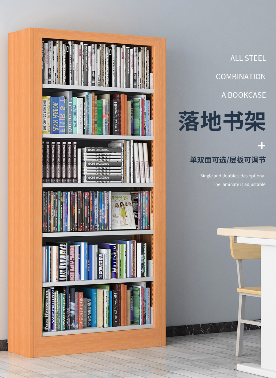 강철 책장 학교 도서관 책장 단일 양면 책장 독서실 철제 보관 선반 바닥 책장 제조업체스토어 가기