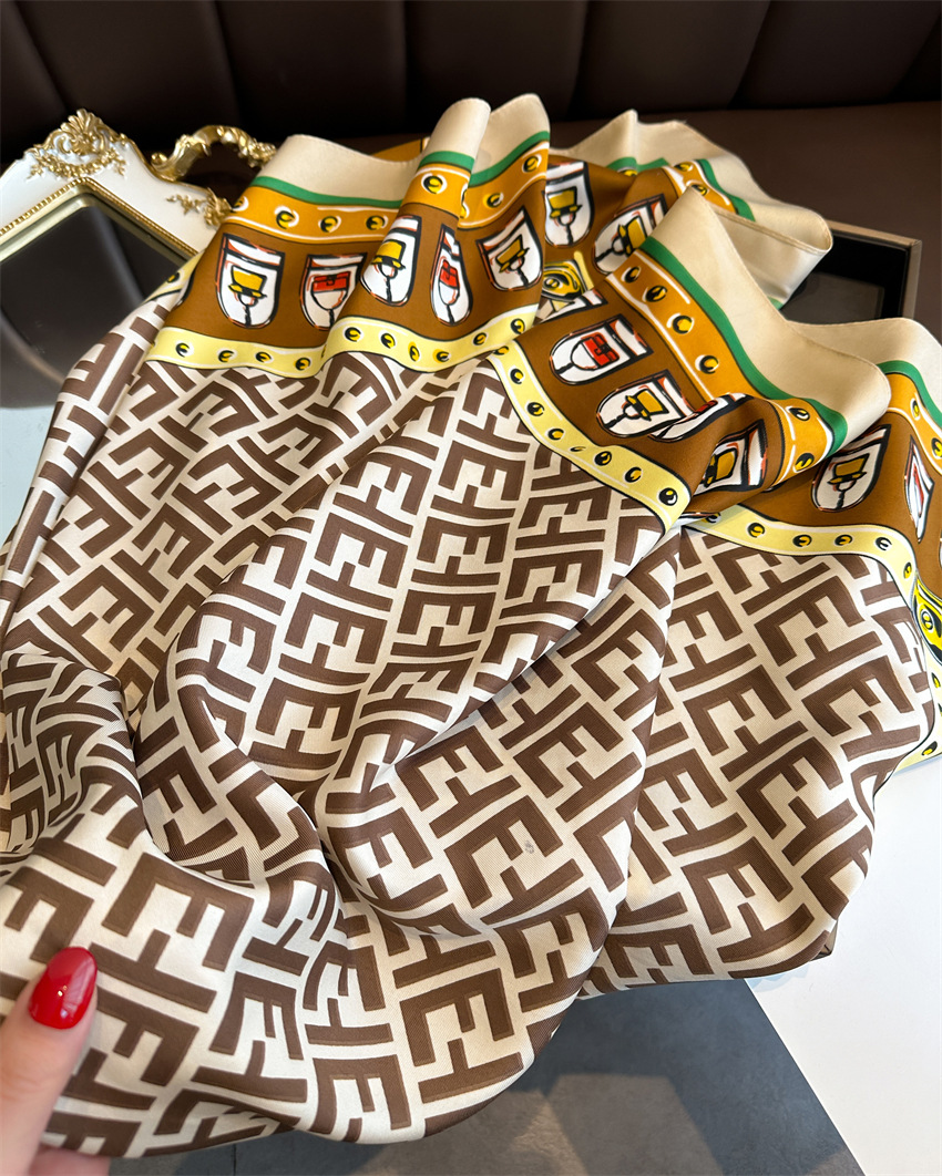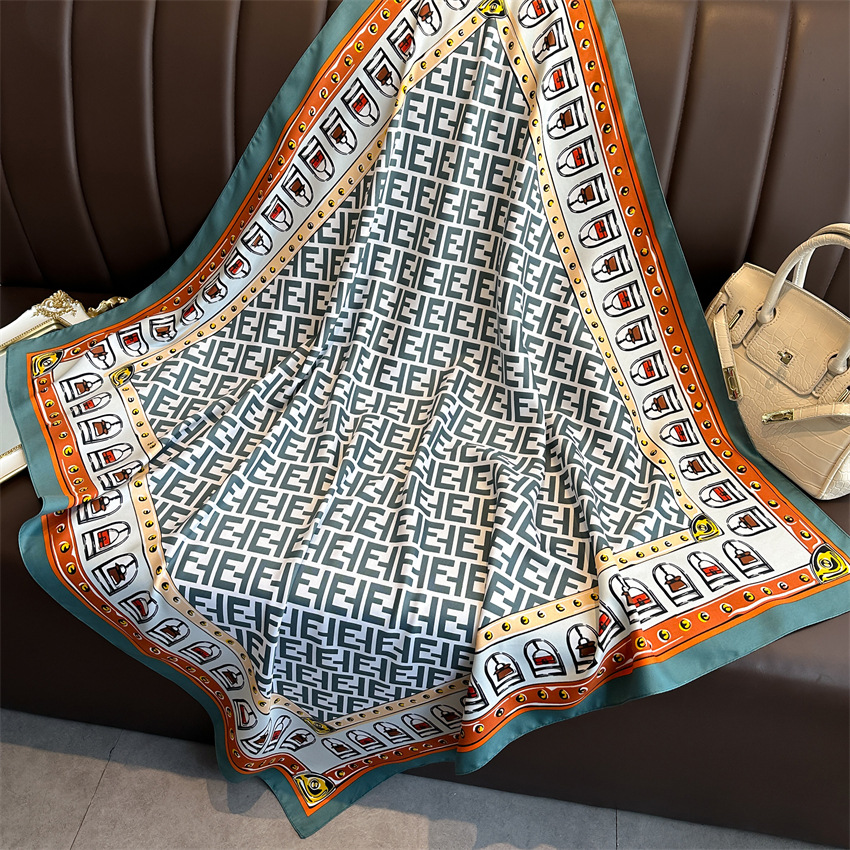 한국 스타일의 새로운 편지 인쇄 스카프 90cm 트윌 스퀘어 스카프 다목적 패션 여행 태양 보호 우아한 목도리 스카프스토어 가기