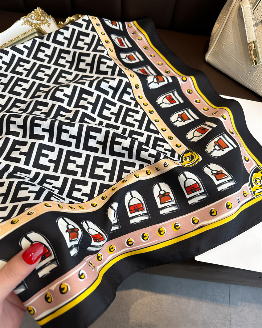 한국 스타일의 새로운 편지 인쇄 스카프 90cm 트윌 스퀘어 스카프 다목적 패션 여행 태양 보호 우아한 목도리 스카프