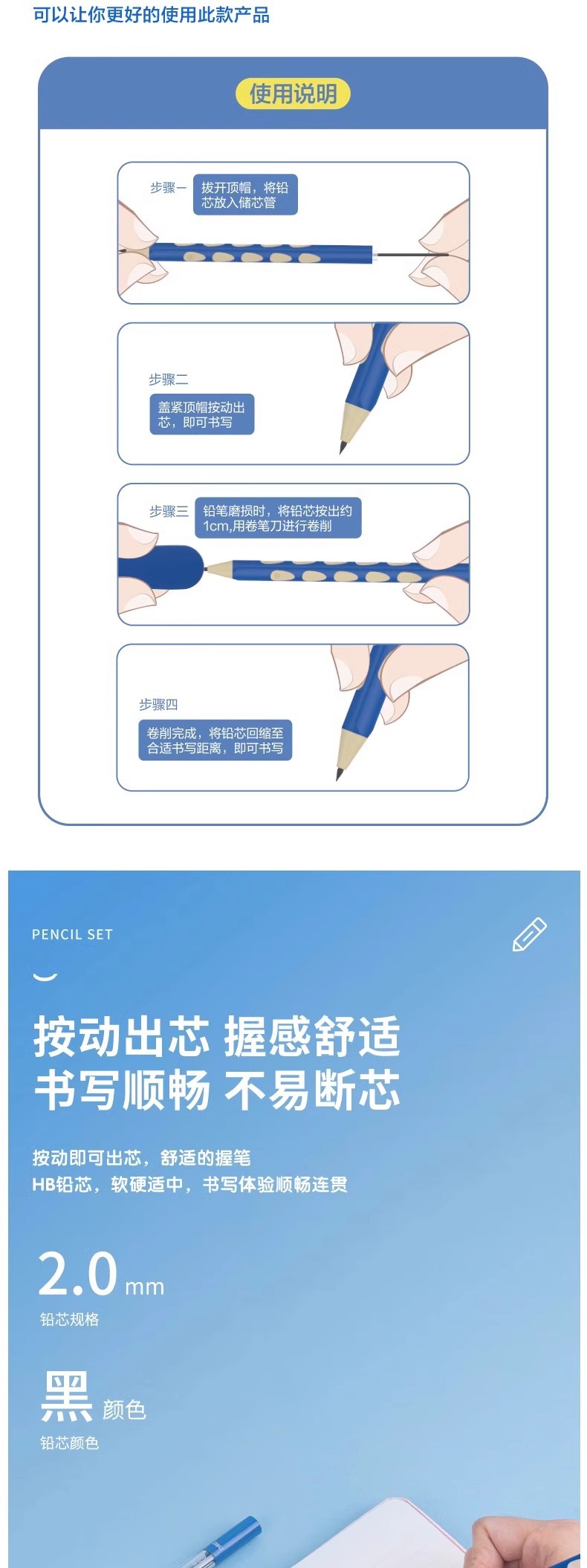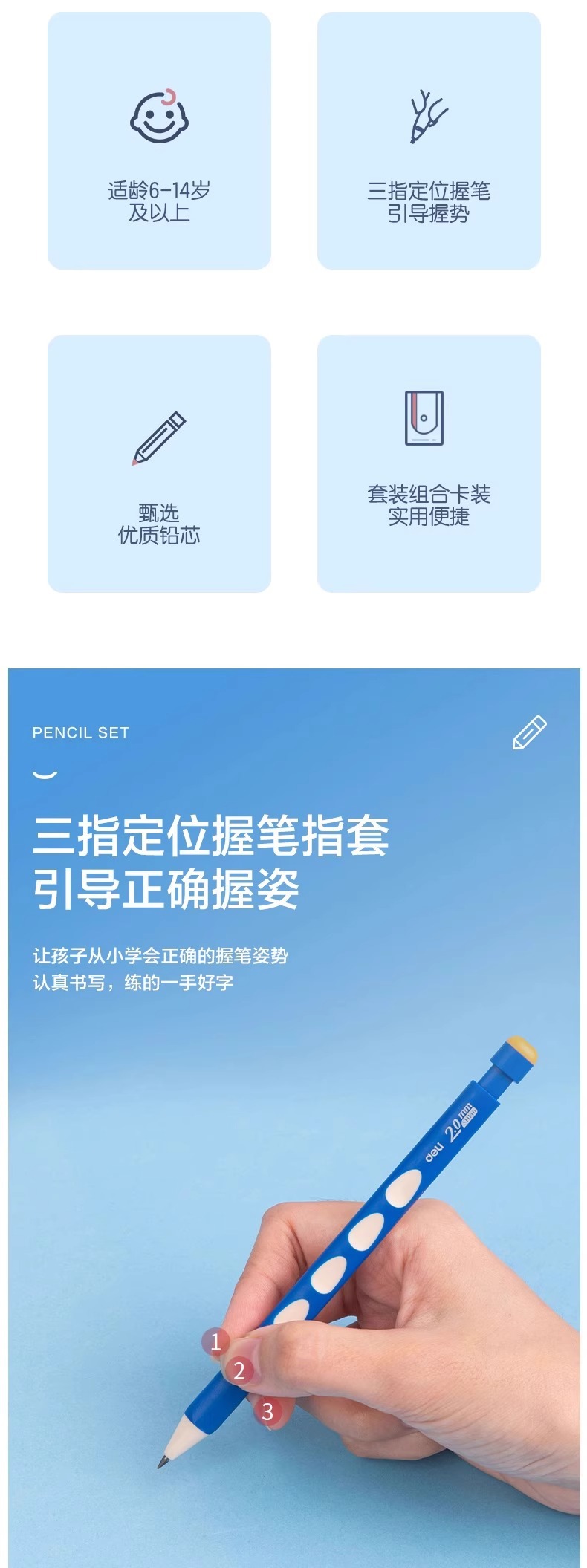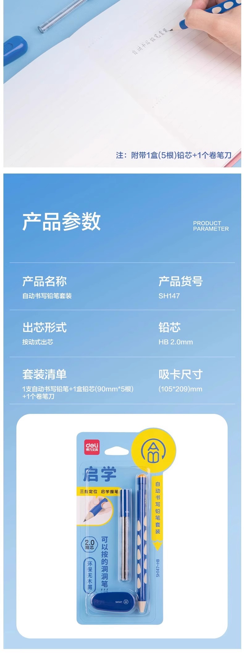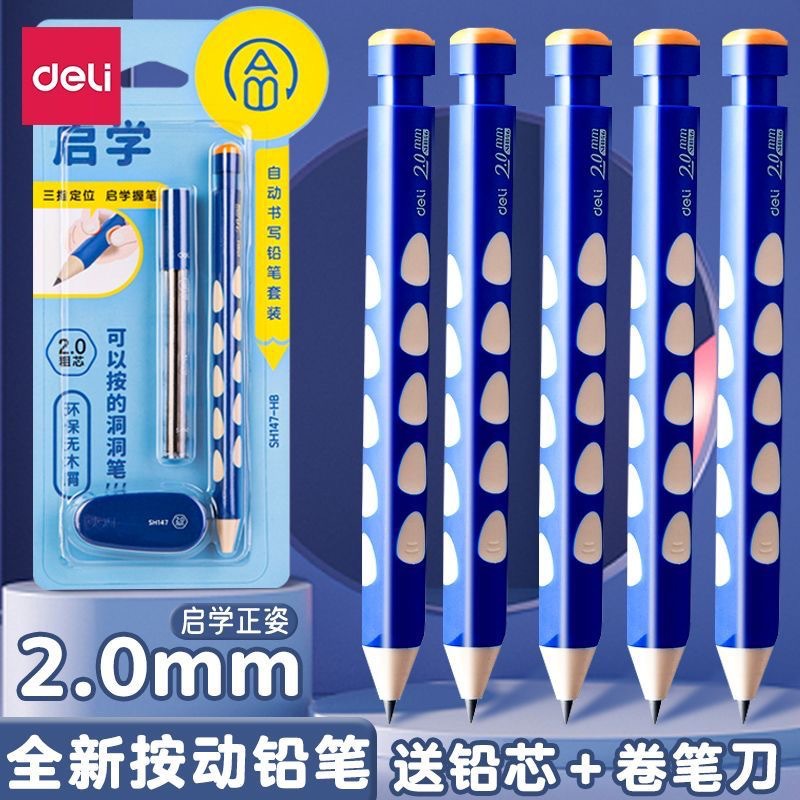 초등학생을 위한 델리 두꺼운 자세 교정 자동 연필 0.9, 유치원생을 위한 그립 자세 교정, 연필심이 포함된 캘리그라피 연습 펜스토어 가기