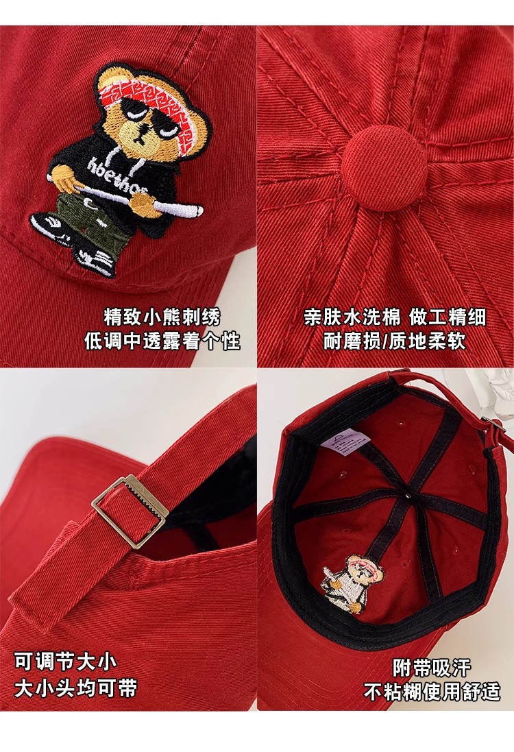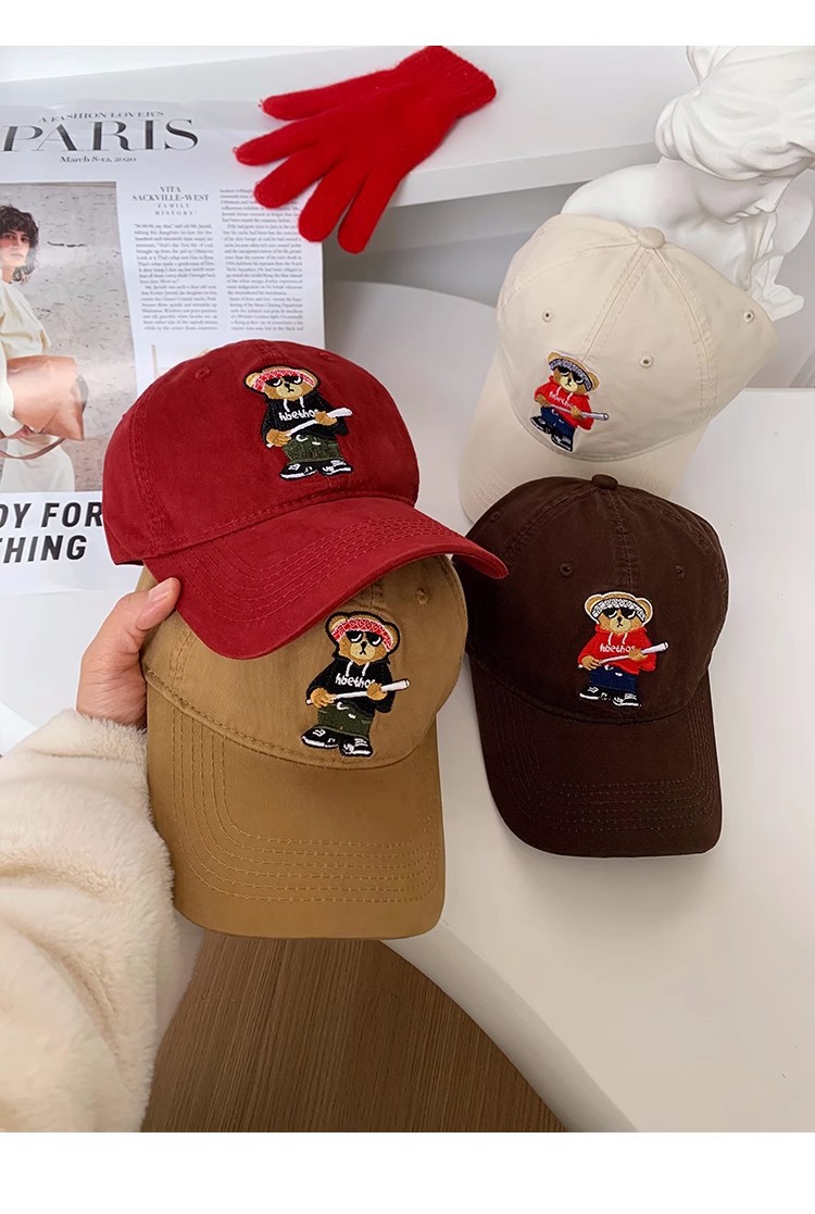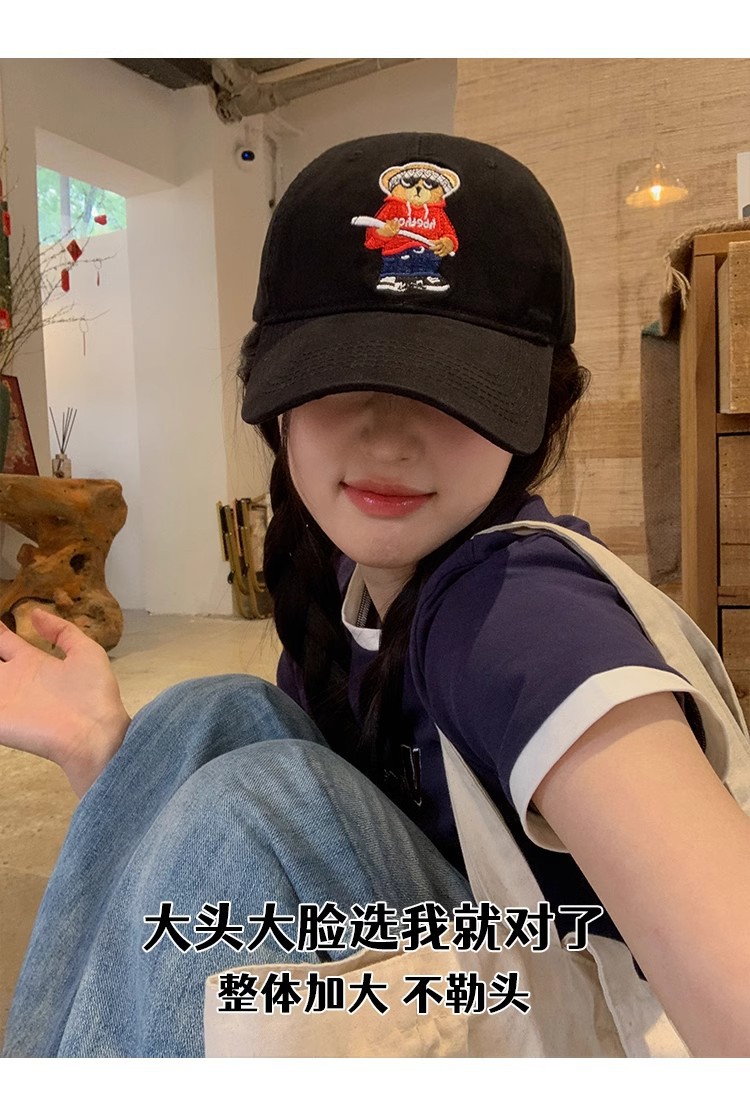 만화 곰 자수 야구 모자 여성 소프트 탑 자수 피크 캡 봄과 여름 한국 스타일 다목적 태양 보호 태양 모자