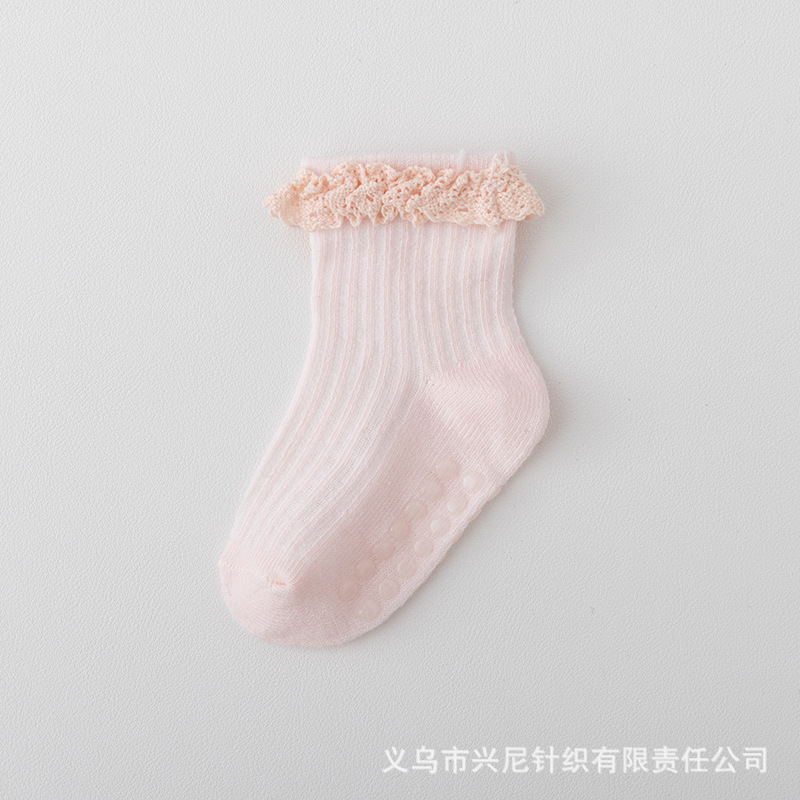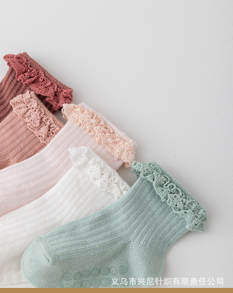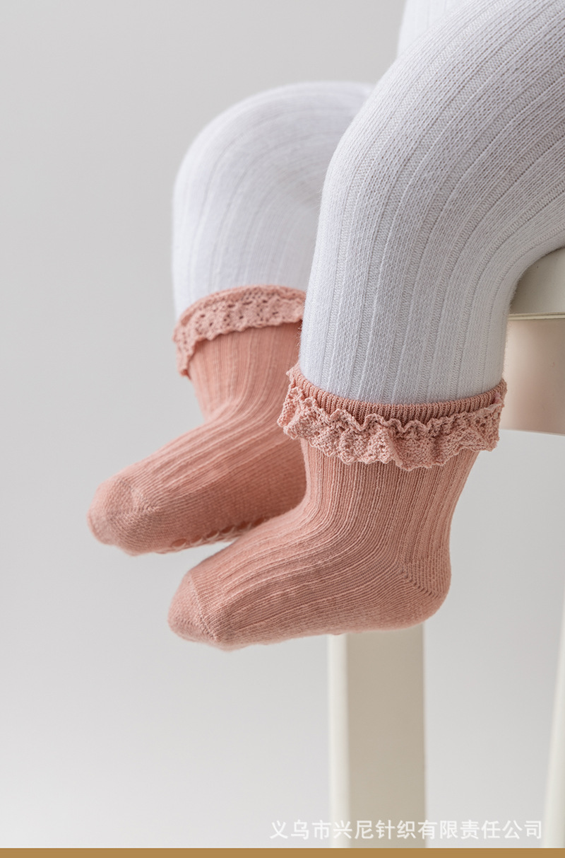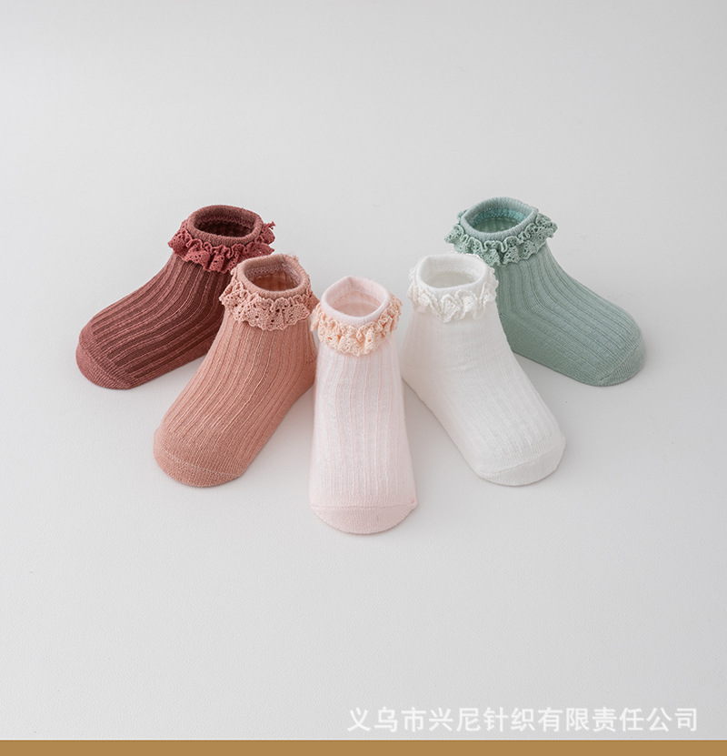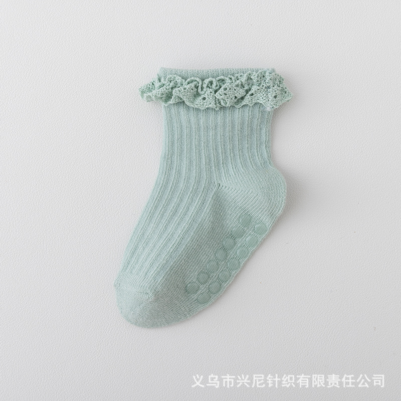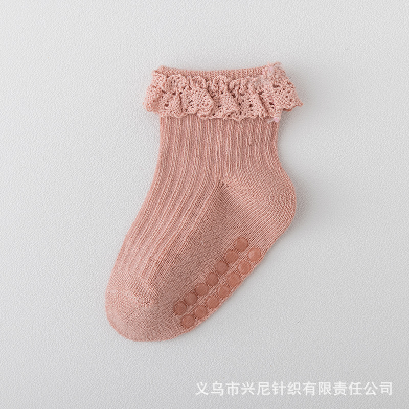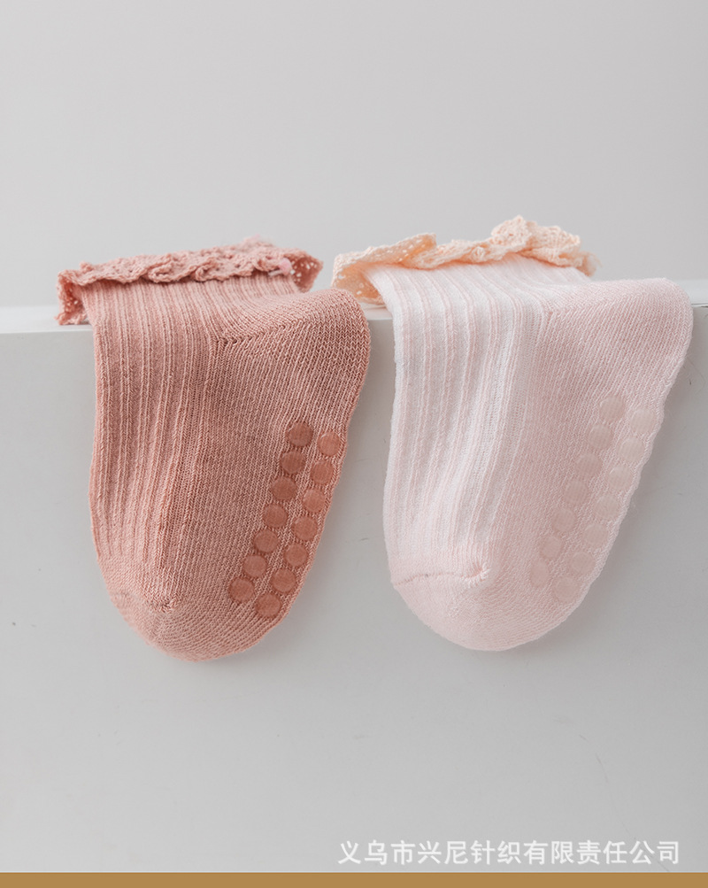 신생아 분배 비 슬립 봄과 가을면 양말 유아 0-6 개월 소녀 공주 레이스 양말 아기 바닥 양말
