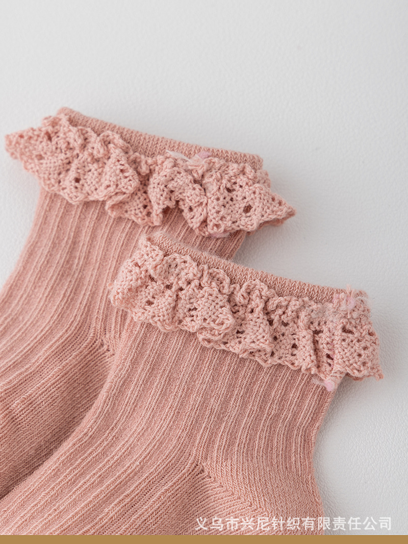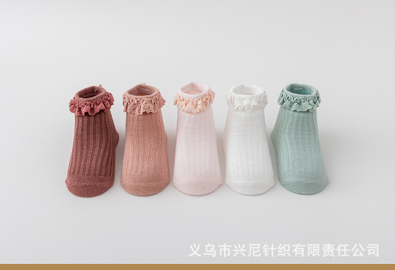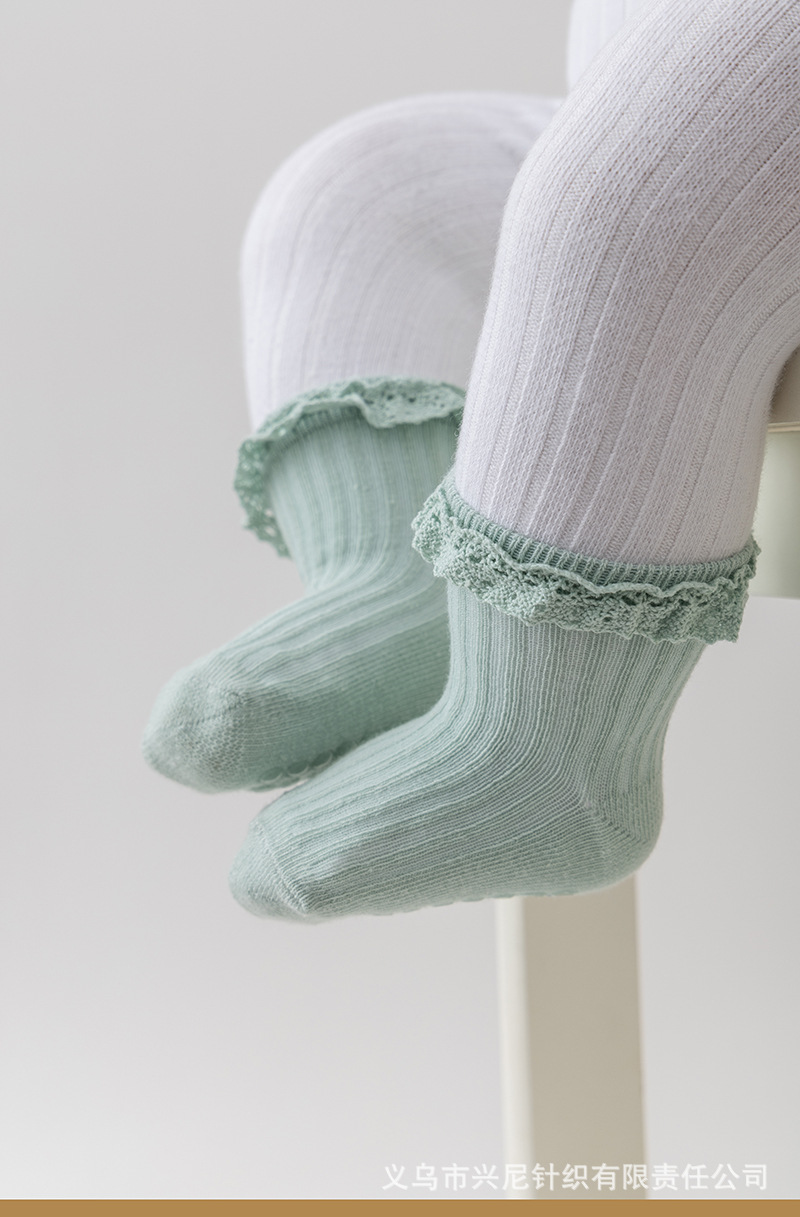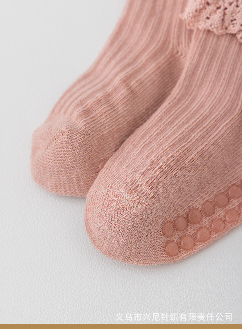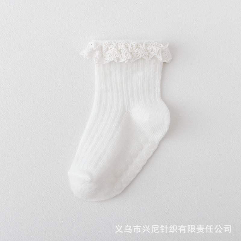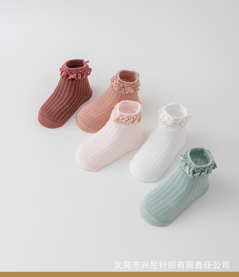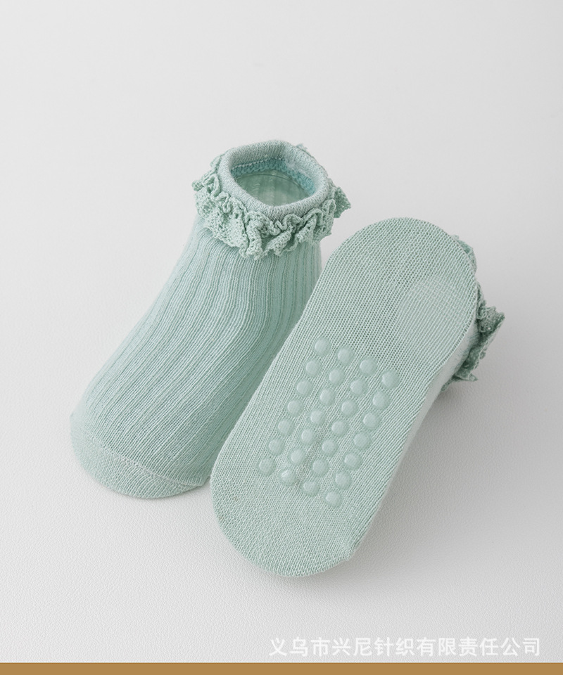 신생아 분배 비 슬립 봄과 가을면 양말 유아 0-6 개월 소녀 공주 레이스 양말 아기 바닥 양말