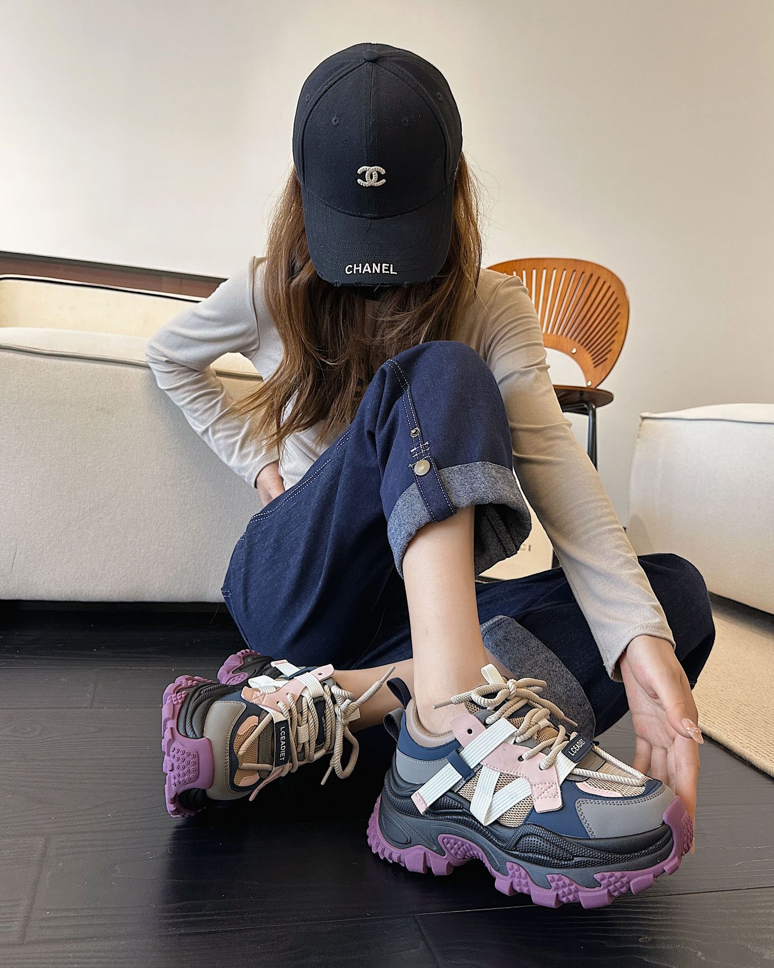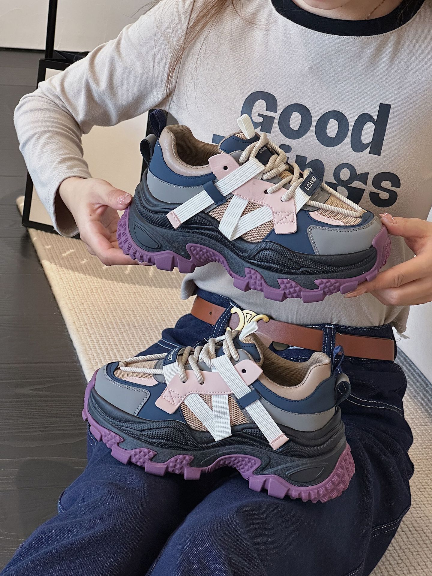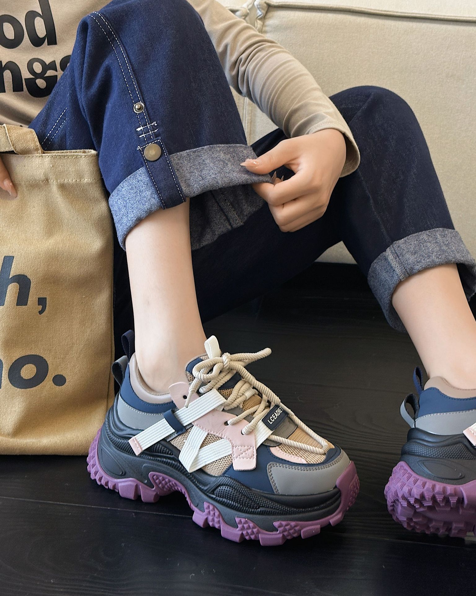 여성 봄 올 매치 두꺼운 바닥 2024 새로운 미끄럼 방지 여성 두리안 하단 패션 브랜드 스포츠 캐주얼 신발