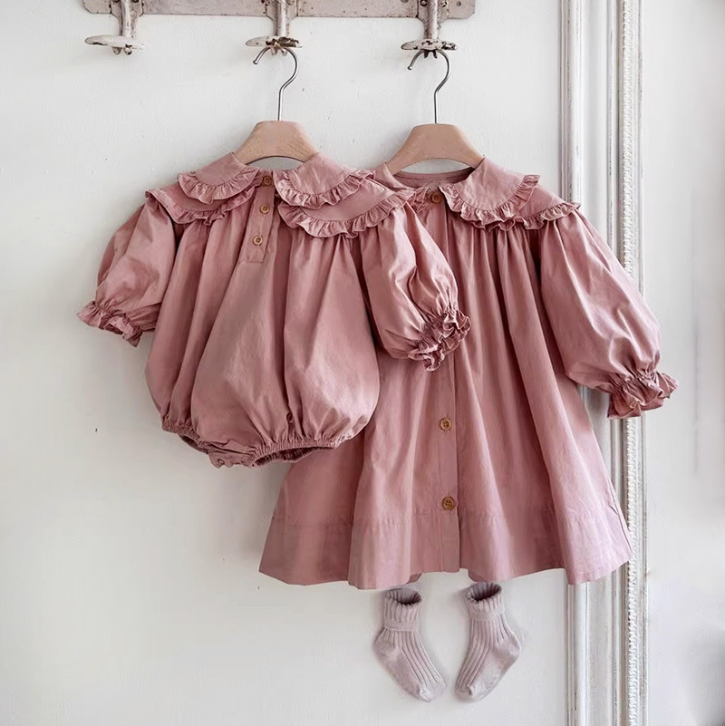 소녀, 한국식 봄 새로운 원피스 한국 스타일 귀여운 느슨한 퍼프 소매 아기 소녀 인형 카디건 원피스스토어 가기