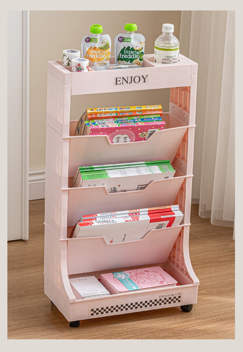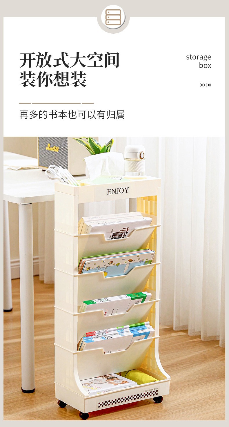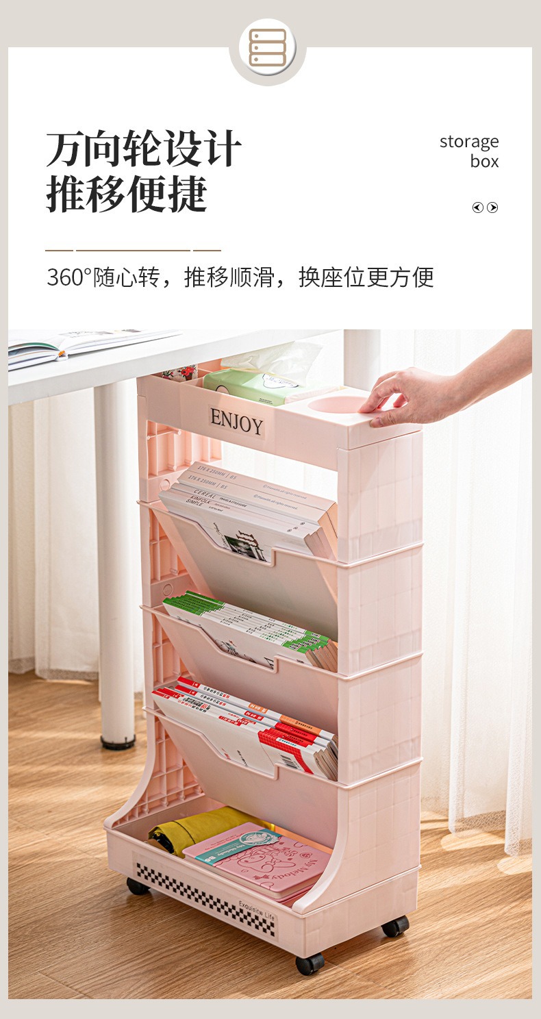 움직일 수있는 책꽂이 비스듬한 삽입 책 정리 랙 책상 책 로딩 아티팩트 학생 테이블 사이드 바퀴 바닥 보관 랙스토어 가기
