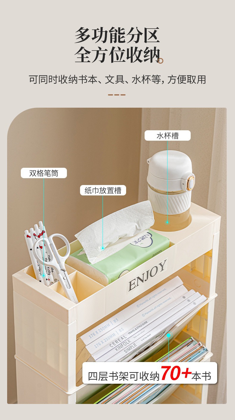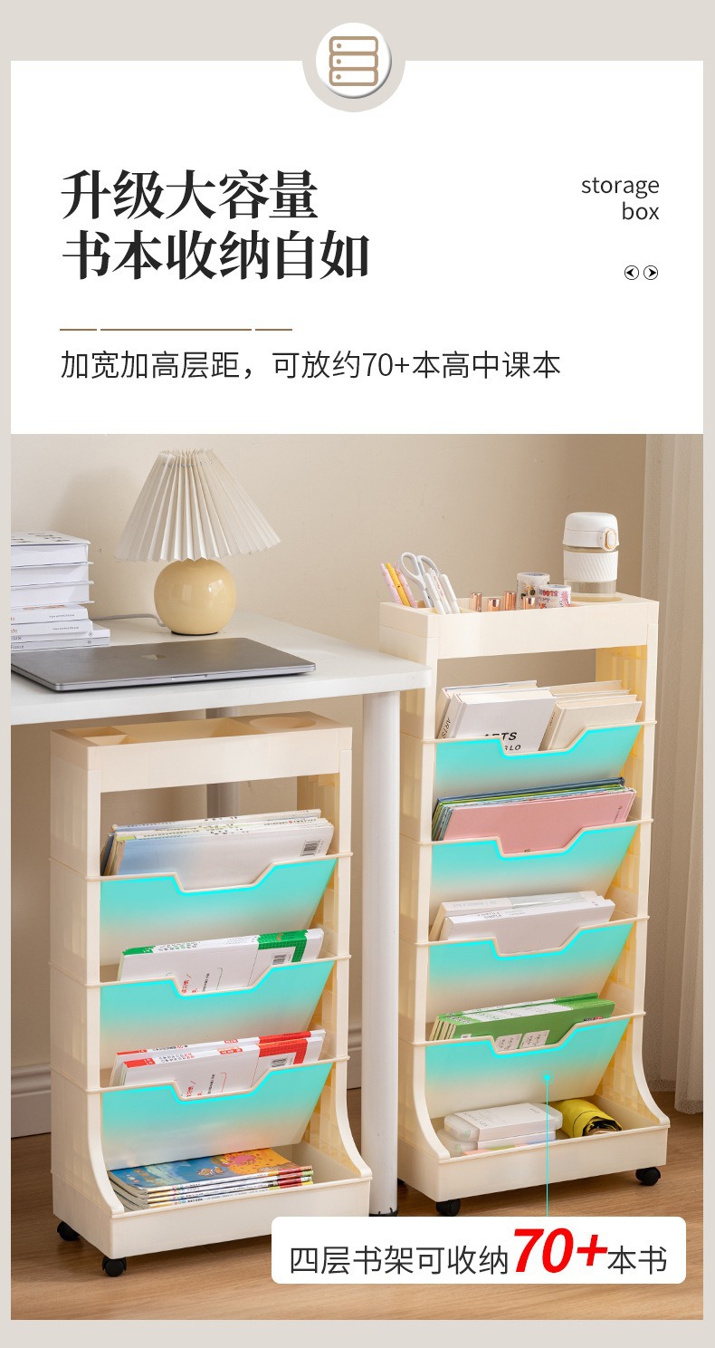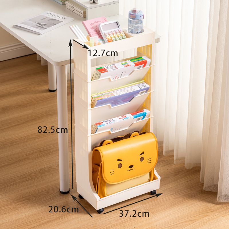 움직일 수있는 책꽂이 비스듬한 삽입 책 정리 랙 책상 책 로딩 아티팩트 학생 테이블 사이드 바퀴 바닥 보관 랙
