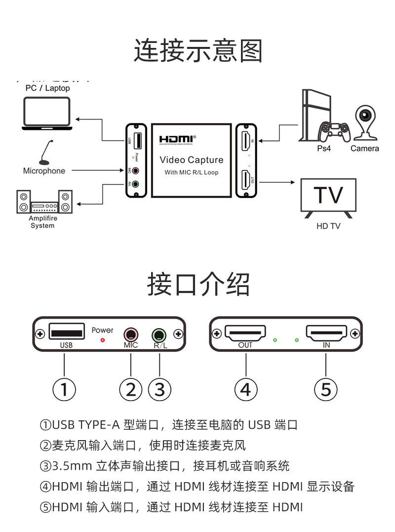 USB HD 게임 캡처 카드 4K HDMI 비디오 레코더 OBS/스위치 회의 모바일 라이브 박스