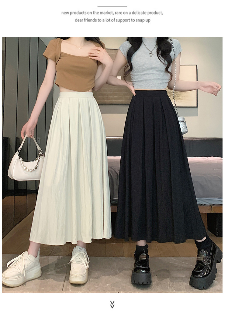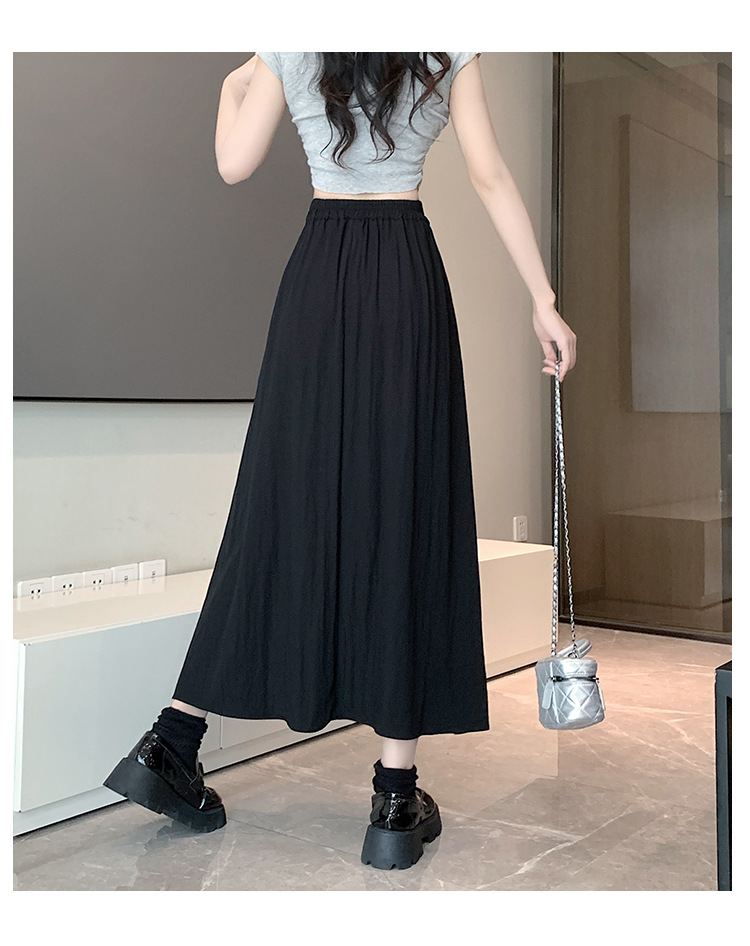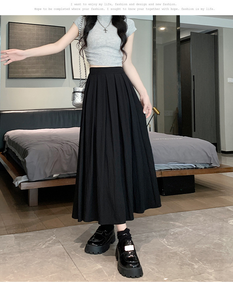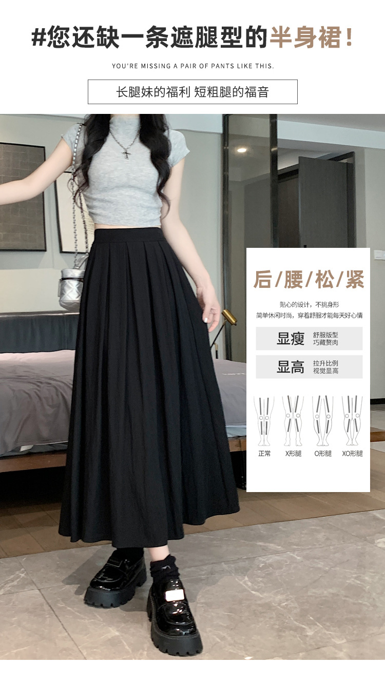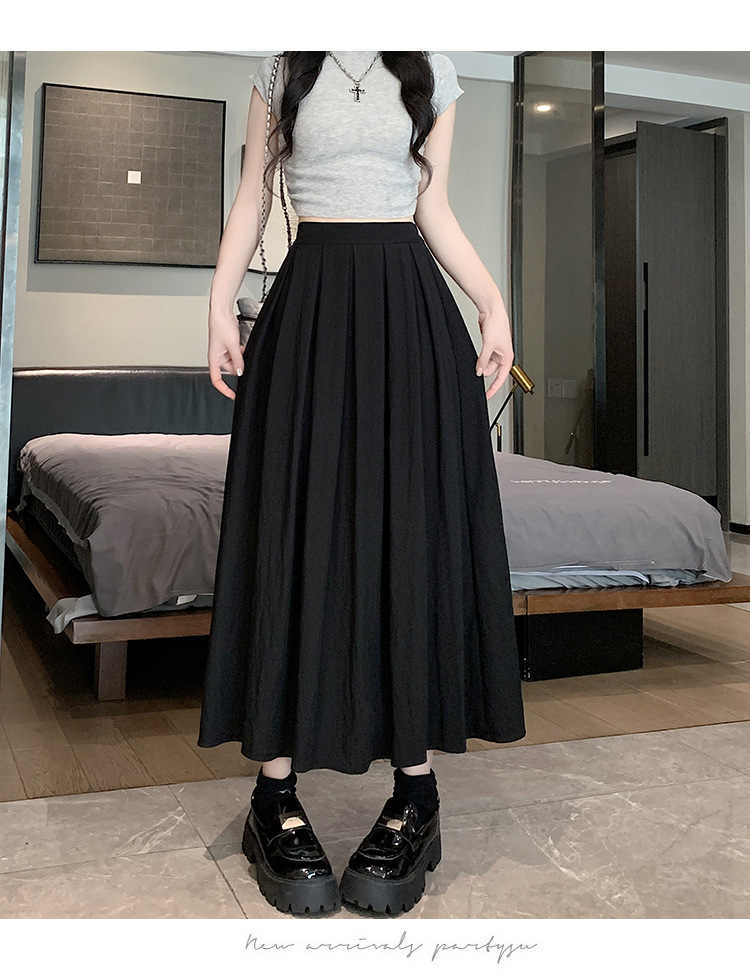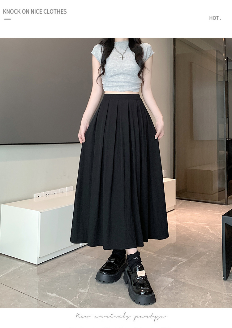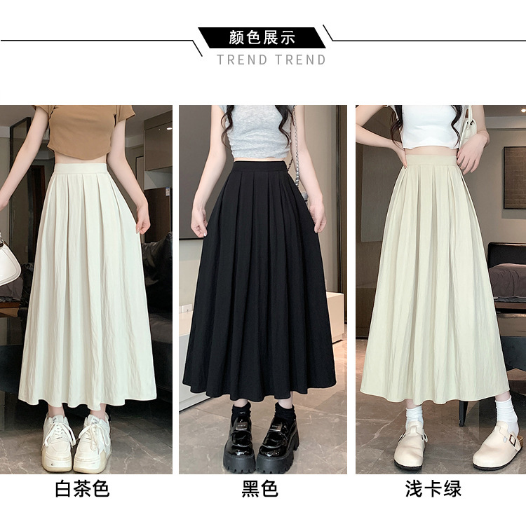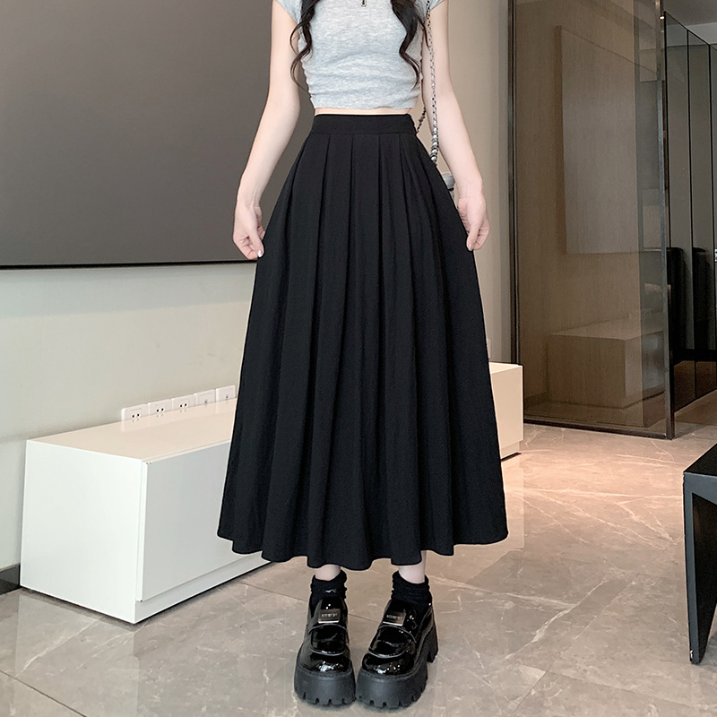 검은 색 중간 길이 스커트 여성 봄과 여름 새로운 탄성 높은 허리 슬리밍 드레이핑 대형 주름 우산 스커트 도매스토어 가기