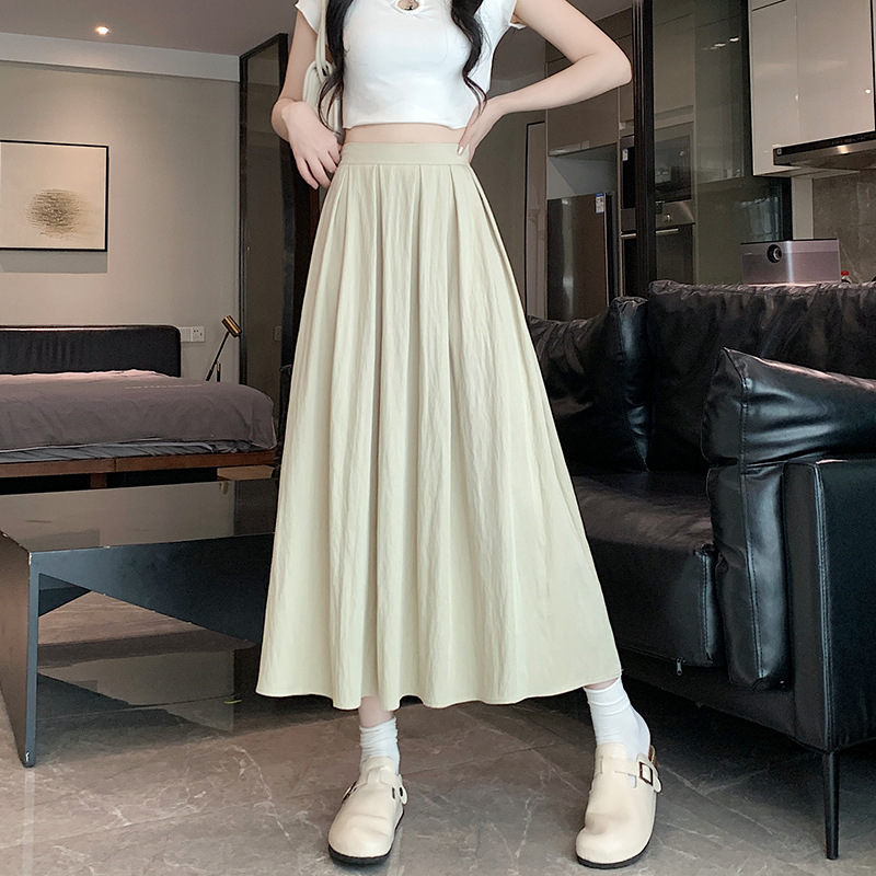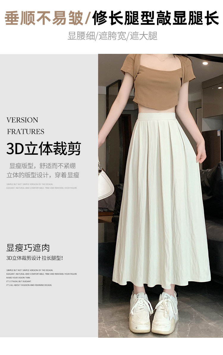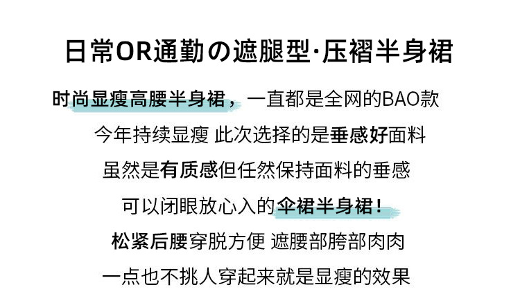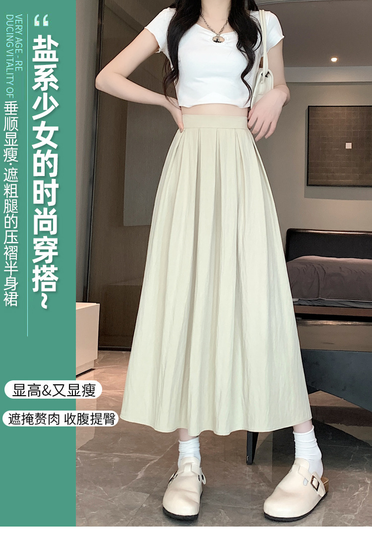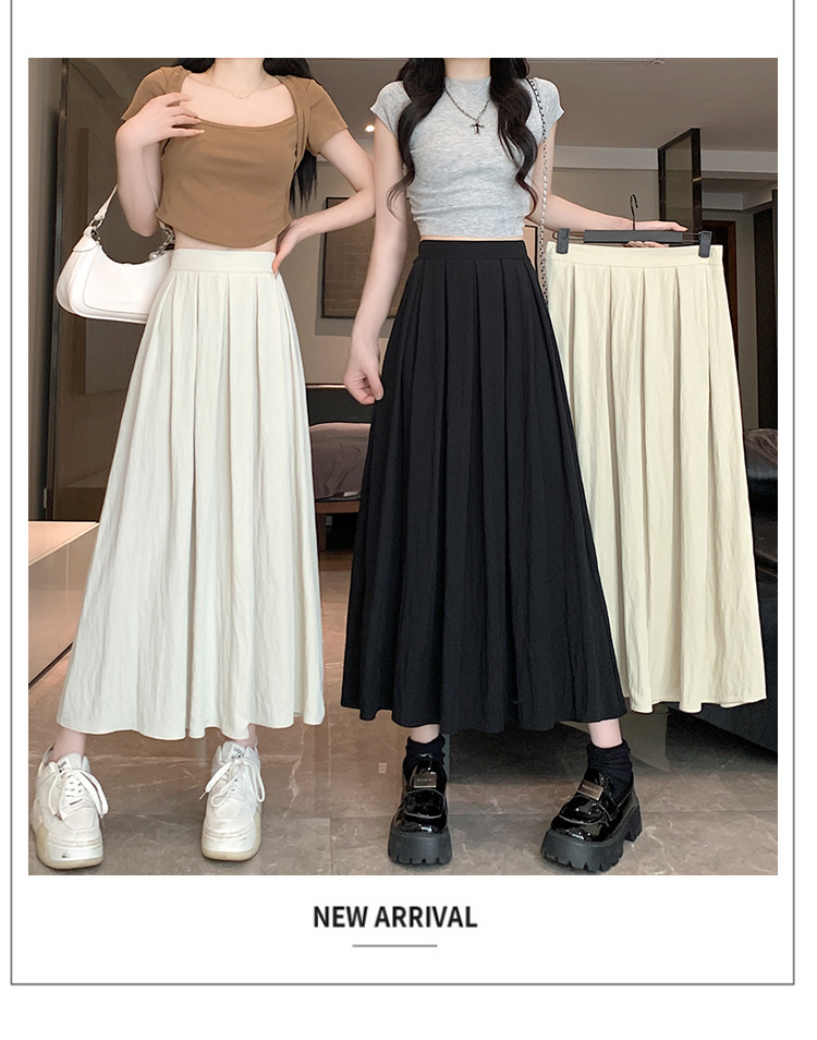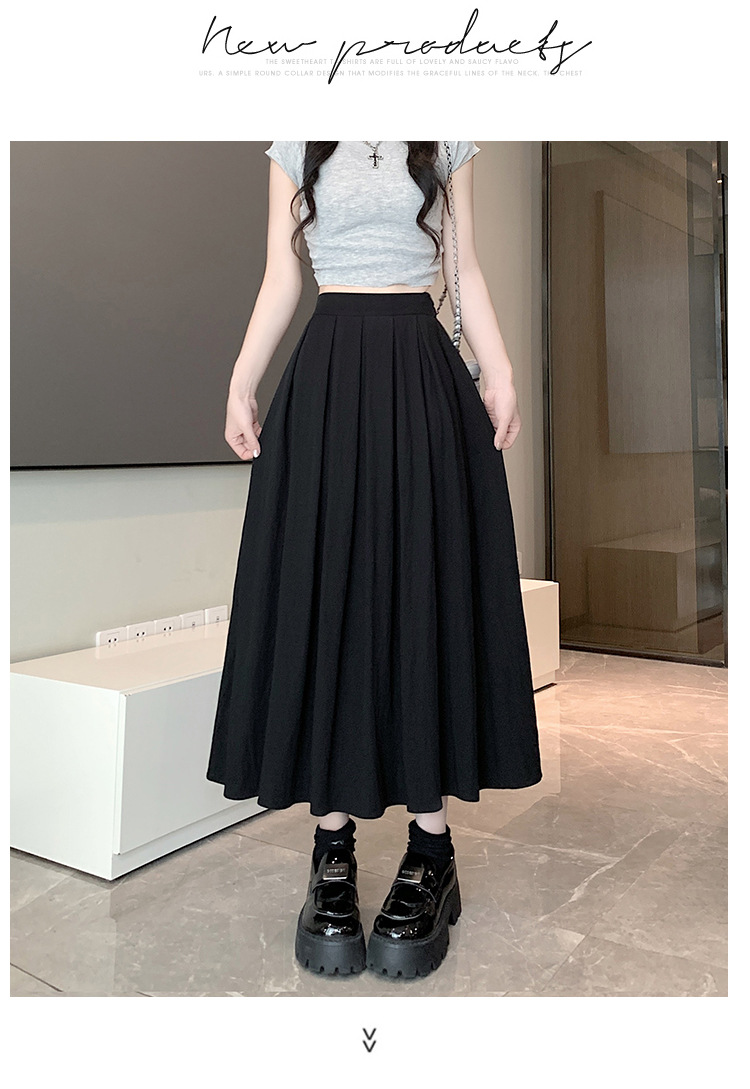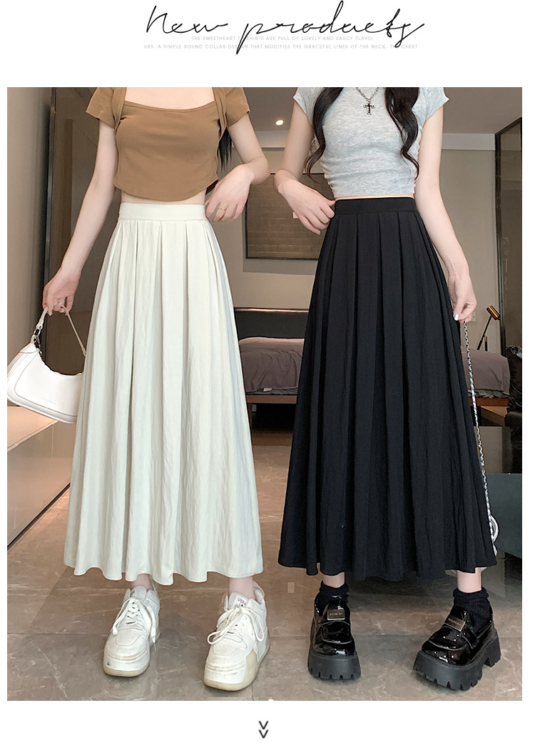 검은 색 중간 길이 스커트 여성 봄과 여름 새로운 탄성 높은 허리 슬리밍 드레이핑 대형 주름 우산 스커트 도매스토어 가기